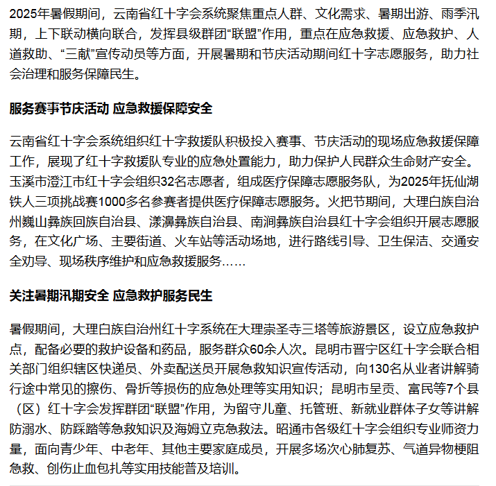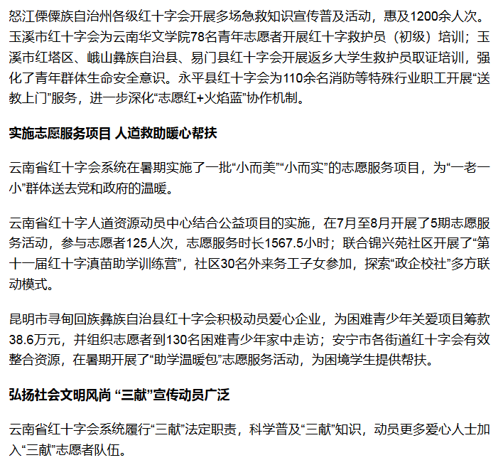 云南省红十字会系统在暑期开展特色志愿服务助力保障民生