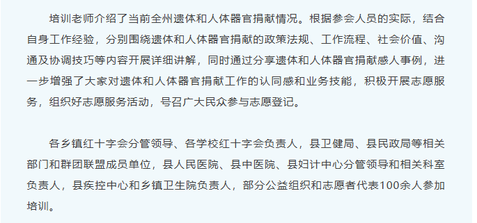 巍山县召开遗体和人体器官捐献工作专题培训会议