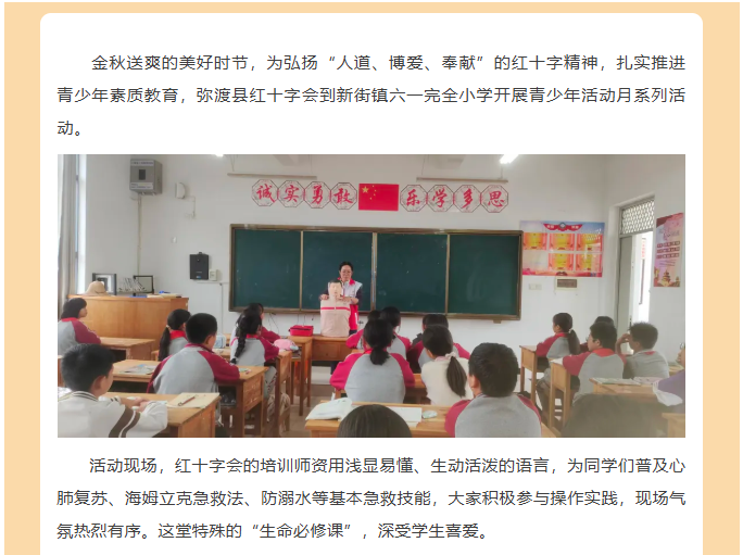 弥渡县红十字会进校园开展青少年活动月系列活动