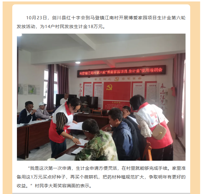 剑川县红十字会开展博爱家园项目生计金第六轮发放活动
