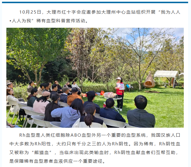 大理市红十字会为稀有血型志愿者开展应急救护知识普及培训