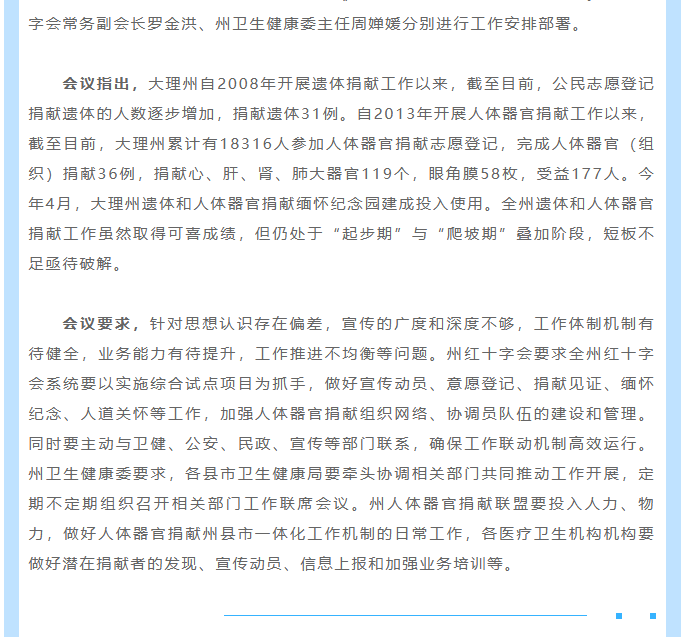 大理州召开遗体和人体器官捐献工作推进会