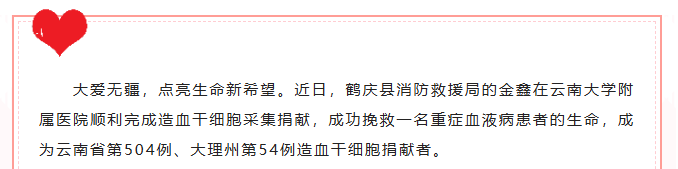 大爱传千里,生命火种点亮生命新希望!鹤庆好男儿成功捐献造血干细胞