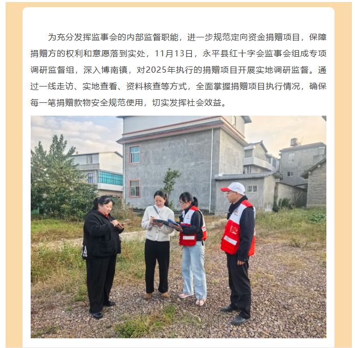 永平县红十字会监事会深入一线开展定向资金捐赠项目调研监督