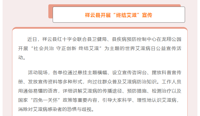 弥渡祥云开展“世界艾滋病日”宣传活动
