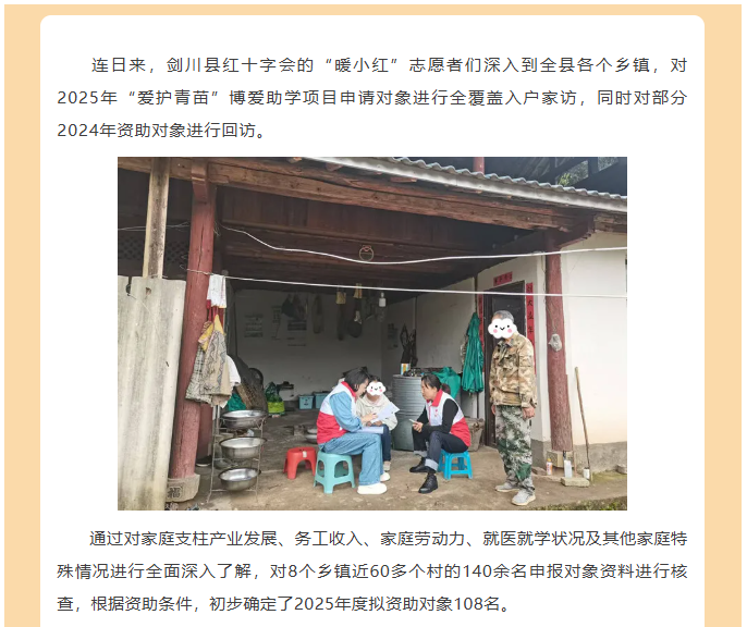 剑川县红十字会开展2025年度“爱护青苗”博爱助学项目入户家访