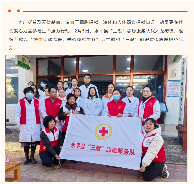 永平县“三献”志愿服务队赴龙街镇开展“三献”知识宣传活动