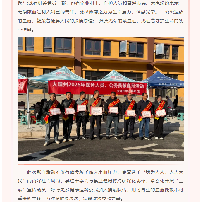 热血传递爱,生命共续航——漾濞县红十字会开展无偿献血及造血干细胞捐献活动