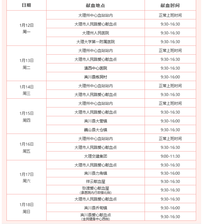 献血指引 | 1月12日至1月18日