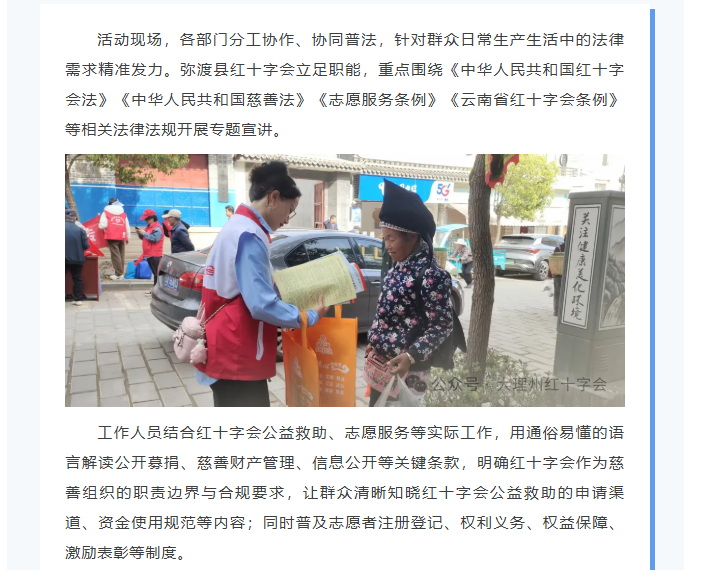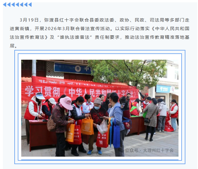 弥渡县红十字会参与联合普法活动 筑牢基层法治防线