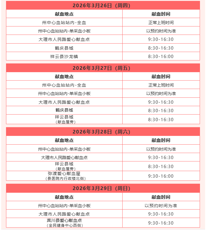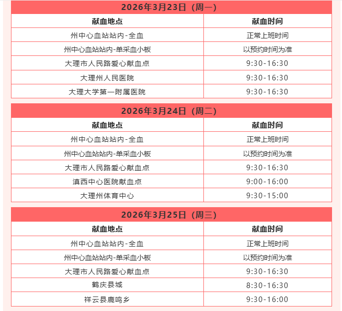 献血指引 | 3月23日至3月29日