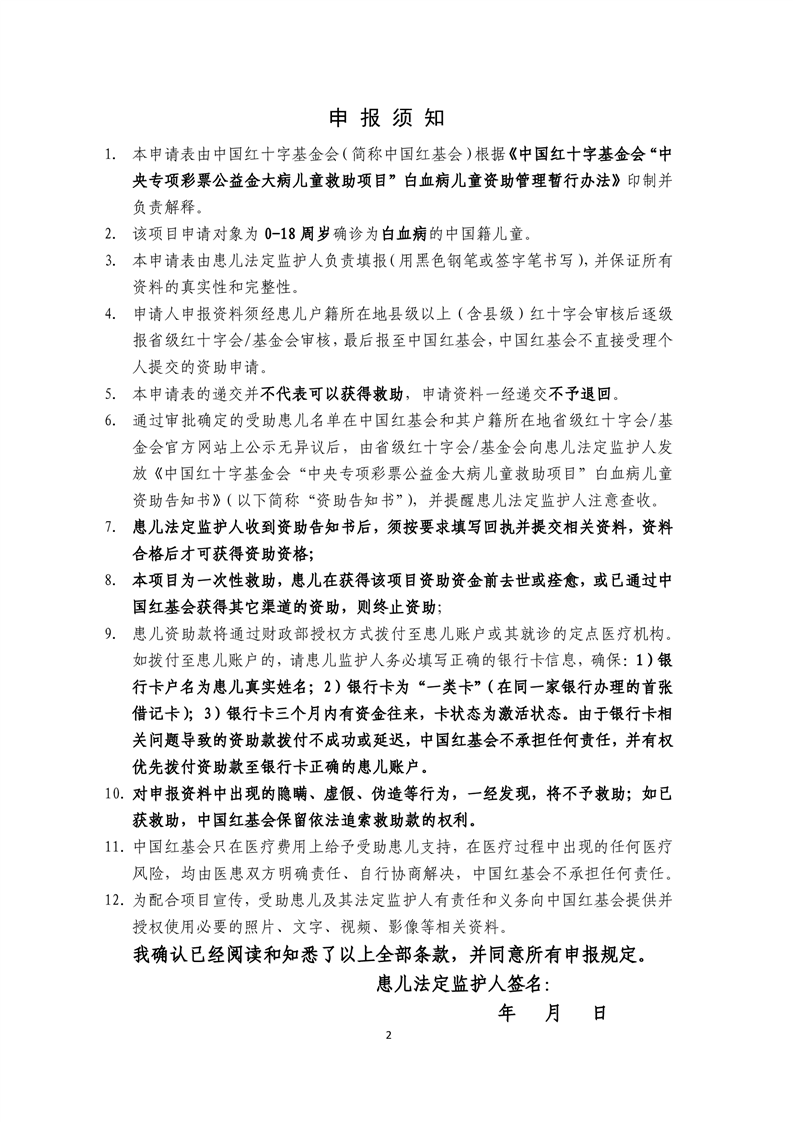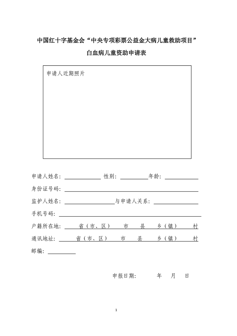 彩票公益金大病儿童救助项目-白血病救助申请表