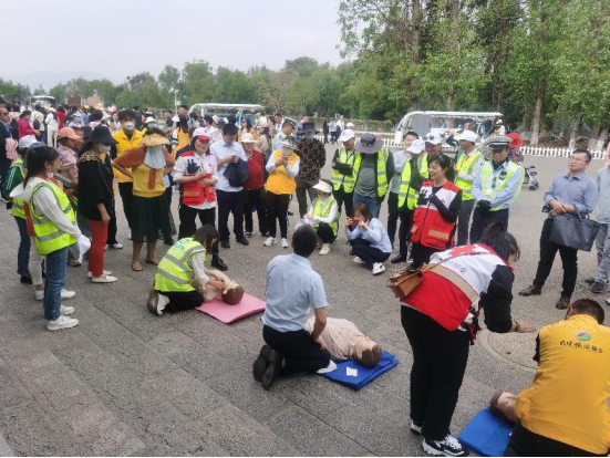 在廊道入口处,大理市红十字会救护培训师梁燕一边讲解,一边操作,让景区工作人员对心肺复苏、止血包扎、AED的使用等有了初步的了解,在演示结束后,针对应急救护技能的关键环节对工作人员进行一对一辅导,参训人员踊跃参与,积极进行实操,培训活动结束后,一名工作人员表示,通过这次面对面讲授与操作,深深的感觉到,类似这样的应急救护技能培训,不仅让自己与家人遇到突发状况知道如何应对,还能为更多人提供帮助,收获颇丰。