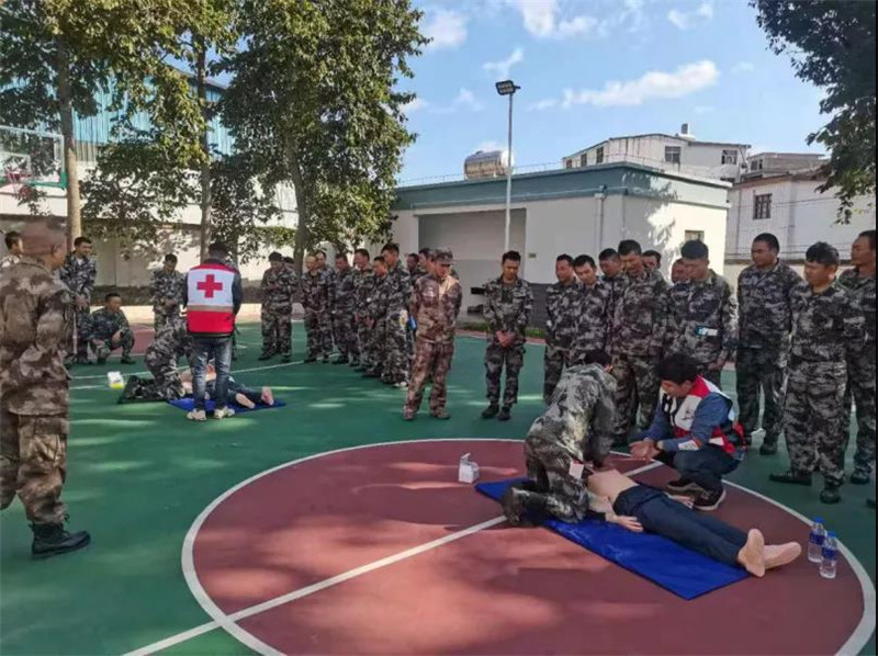 11月24日、26日,为楚雄市防空民兵分队70余名民兵开展了应急救护知识与技能培训,培训结束后组织民兵进行了救护技能实操演练。