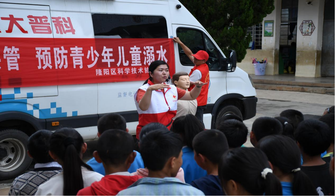 为进一步提高青少年儿童防溺水能力,7月5日,隆阳区红十字会联合区科学技术协会共同走进西邑乡铺门前小学,开展“全社会齐抓共管,预防青少年儿童溺水”之关爱儿童科学普及志愿服务活动。