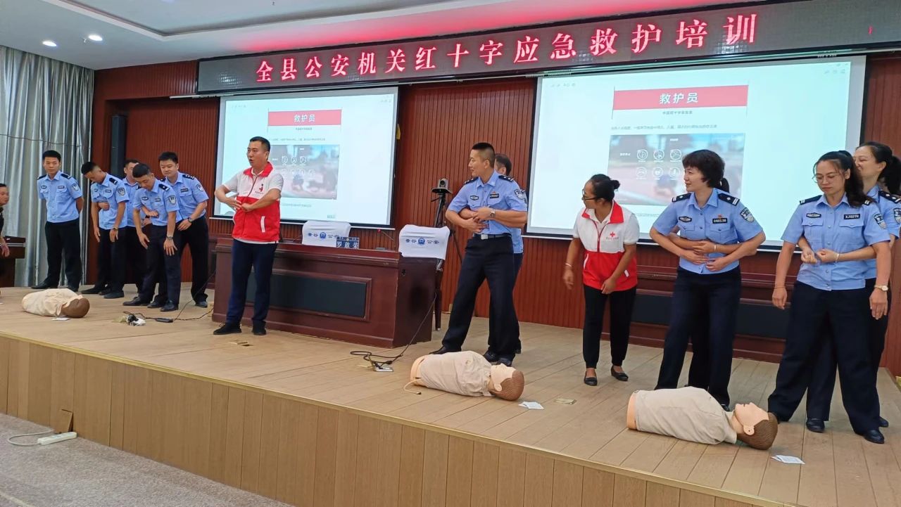 为全面普及应急救护知识和技能,进一步提升全县公安队伍的自救互救能力,更好的保障人民群众和自身安全,7月21日,景谷县红十字会联合县公安局开展了公安系统应急救护培训,县公安局机关、交警大队、森林警察大队、监所、各派出所共300余名民辅警参加培训。