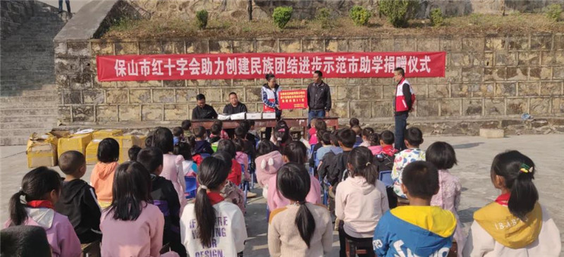 3月24日,保山市红十字会常务副会长王海燕带队深入昌宁县耇街彝族苗族乡阿水村彝族完小、土皮金叶完小,向广大师生和干部宣传普及了红十字会知识和“三个离不开”等民族团结的知识,并向两所完小捐赠了由云南权元科技有限公司提供的价值11.63万元的校服105套。