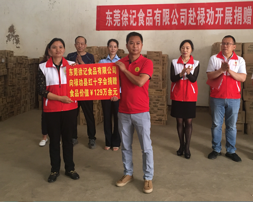 7月12日,东莞徐记食品有限公司赴禄劝开展捐赠活动,县红十字会接收公司捐赠的徐福记食品2147件(价值129万余元)。