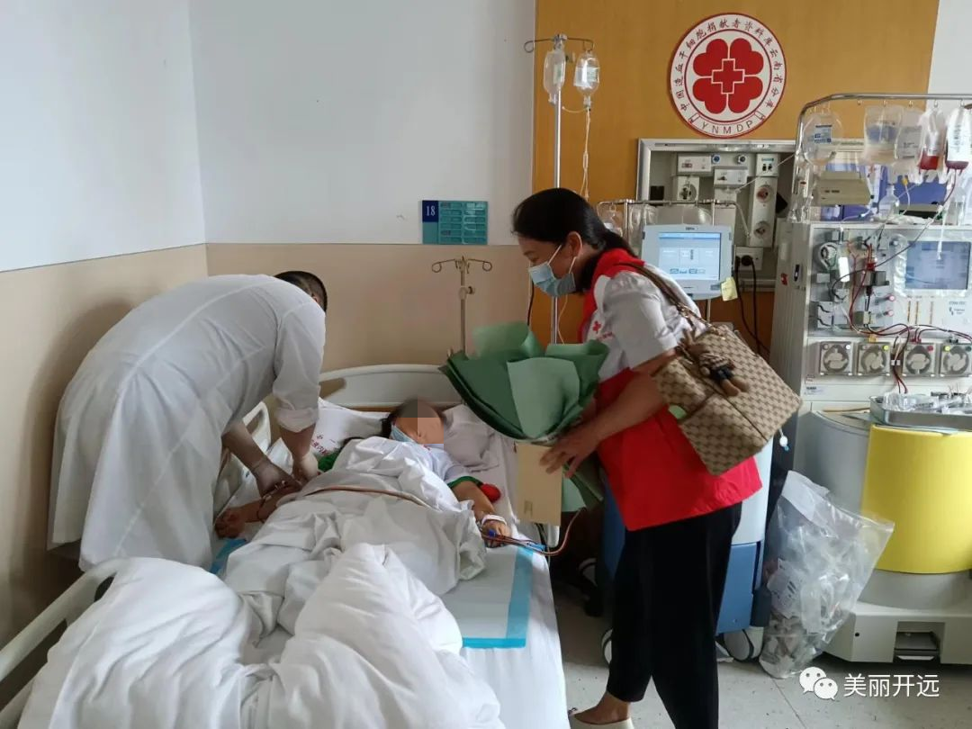 李女士躺在病床上,表情轻松,不时露出笑容。在昆明期间,除了家人无微不至的照顾,云南省、红河州红十字会的多位志愿者一直陪伴在她的身边,讲述自己捐献的故事,给她加油打气。7月18日,开远市红十字会工作人员到昆明看望她,为她送上证书和鲜花。