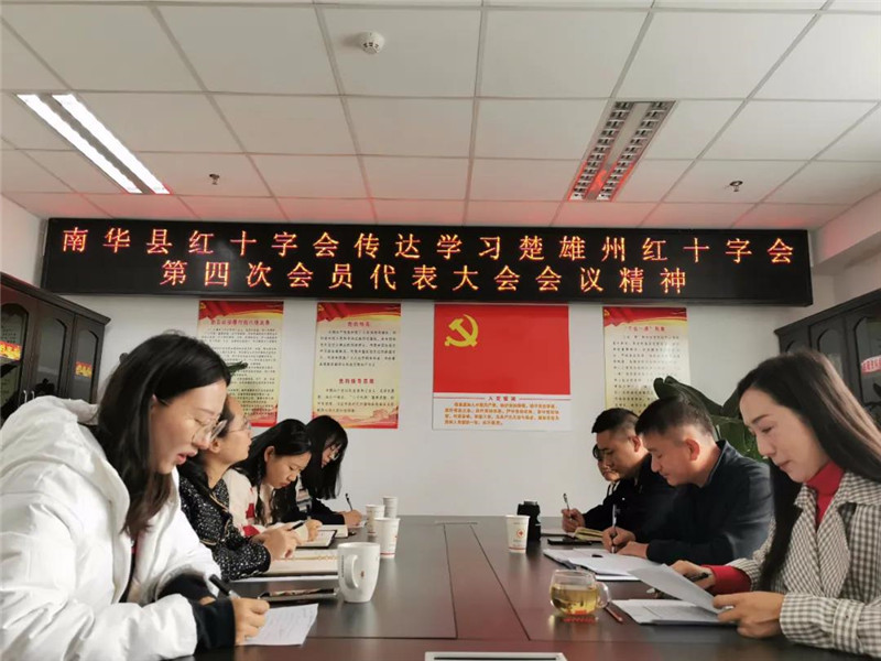 11月9日上午,南华县红十字会召开职工会议,学习传达楚雄州红十字会第四次会员代表大会会议精神。