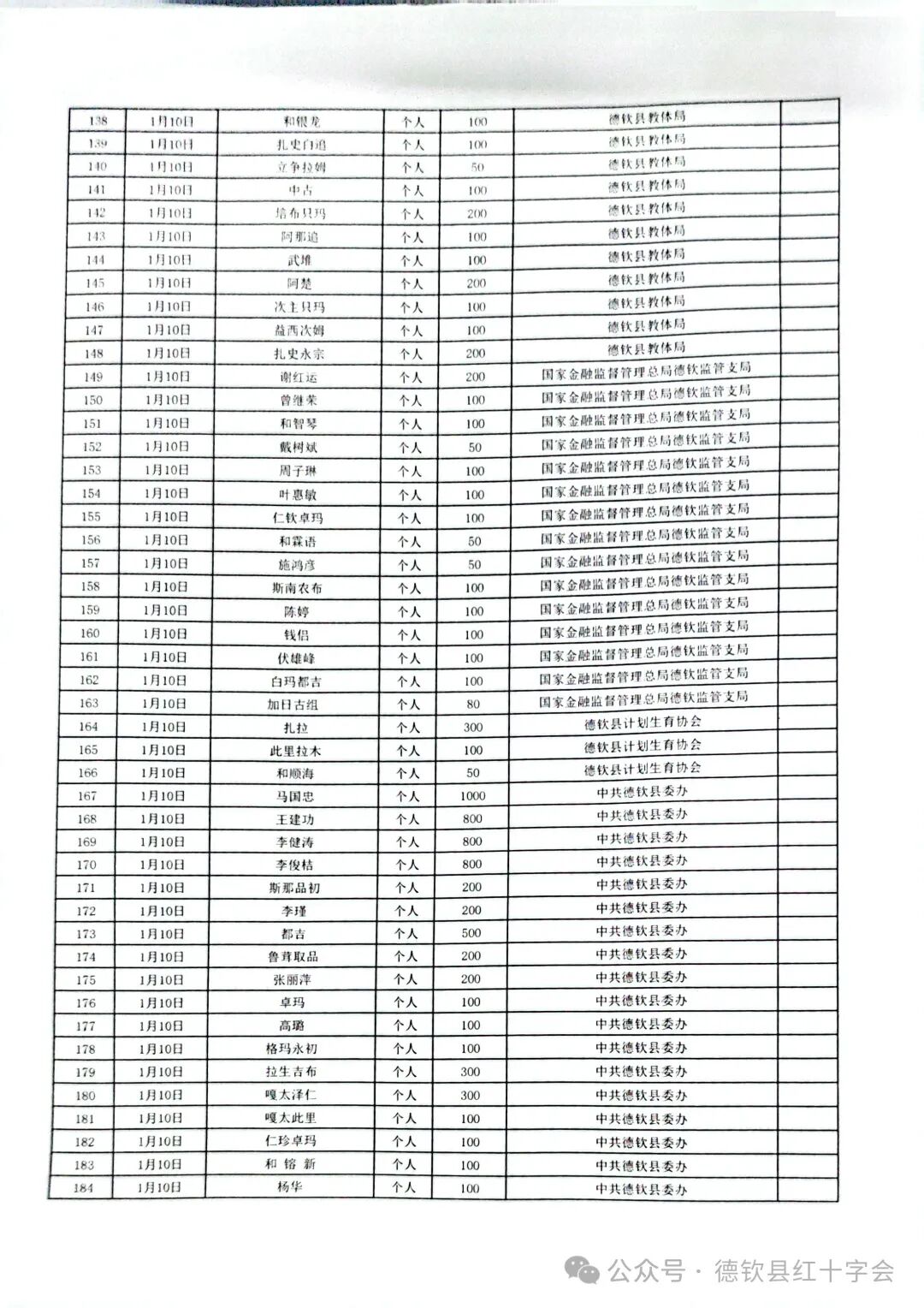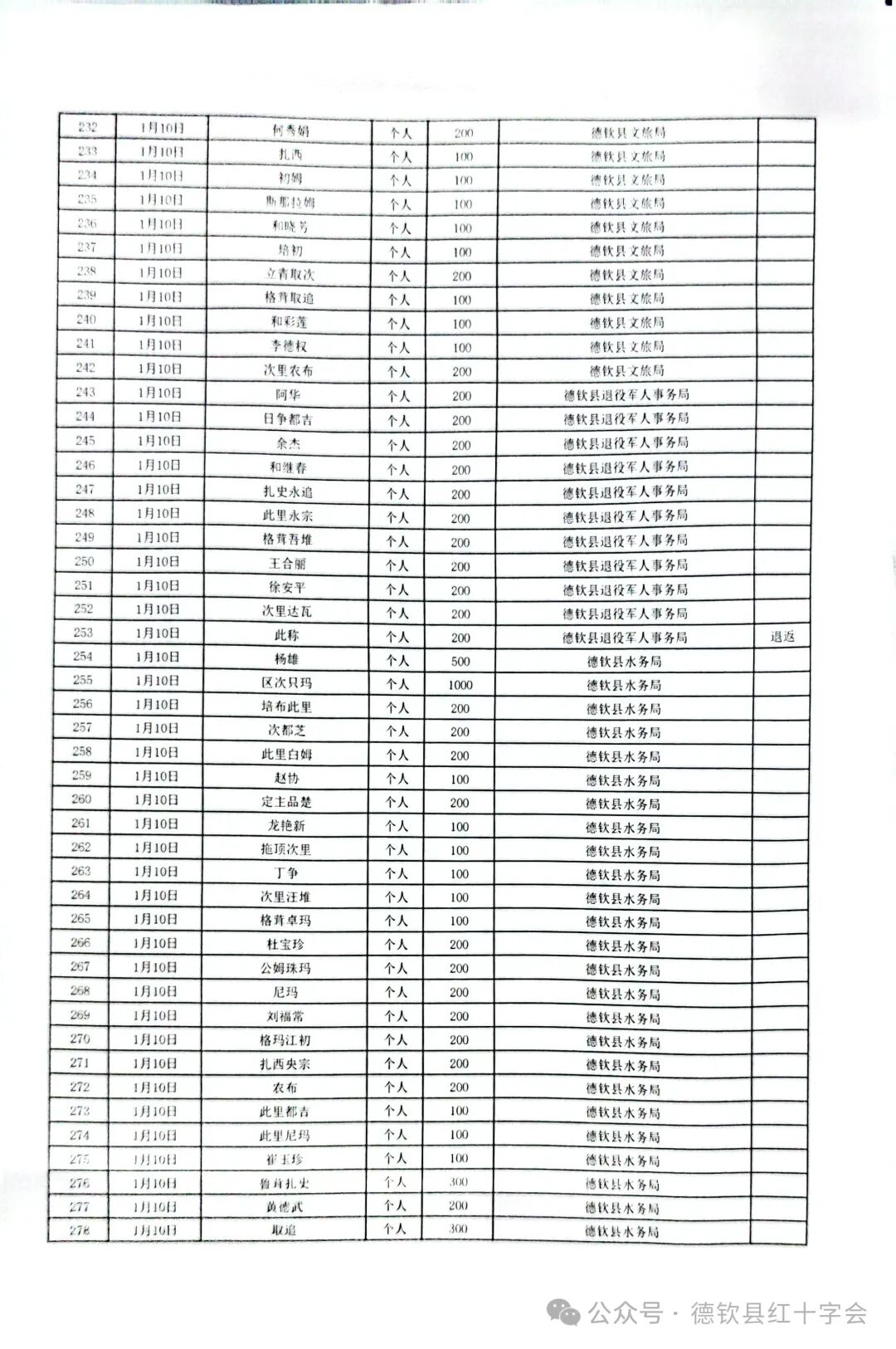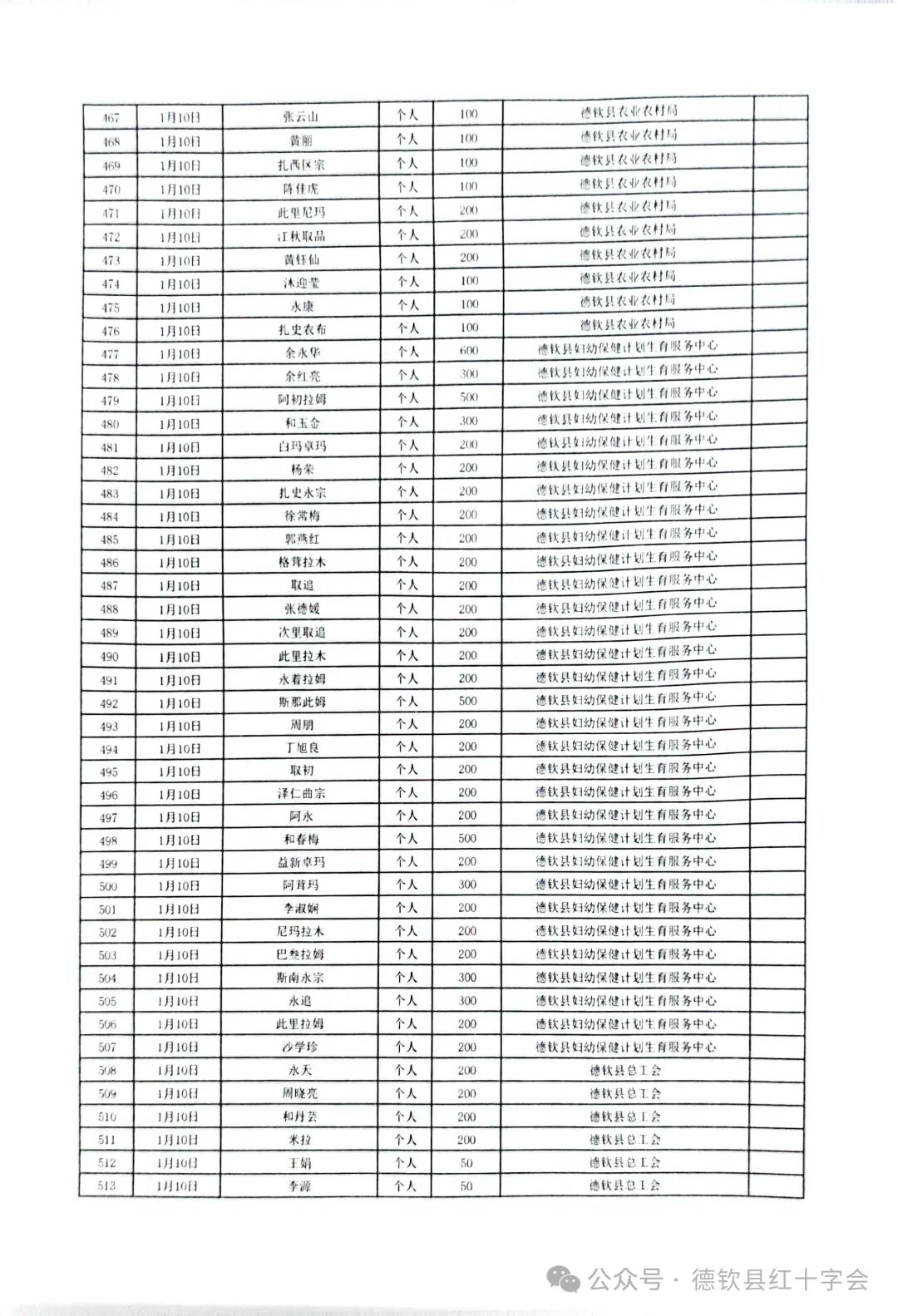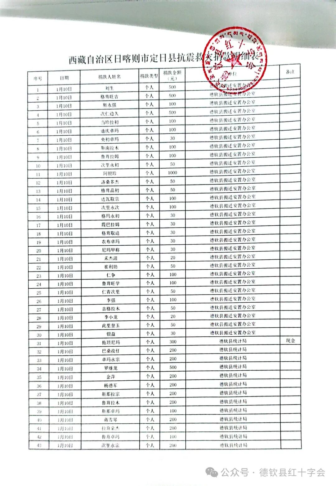 西藏自治区日喀则市定日县抗震救灾捐款情况公示(第二期)