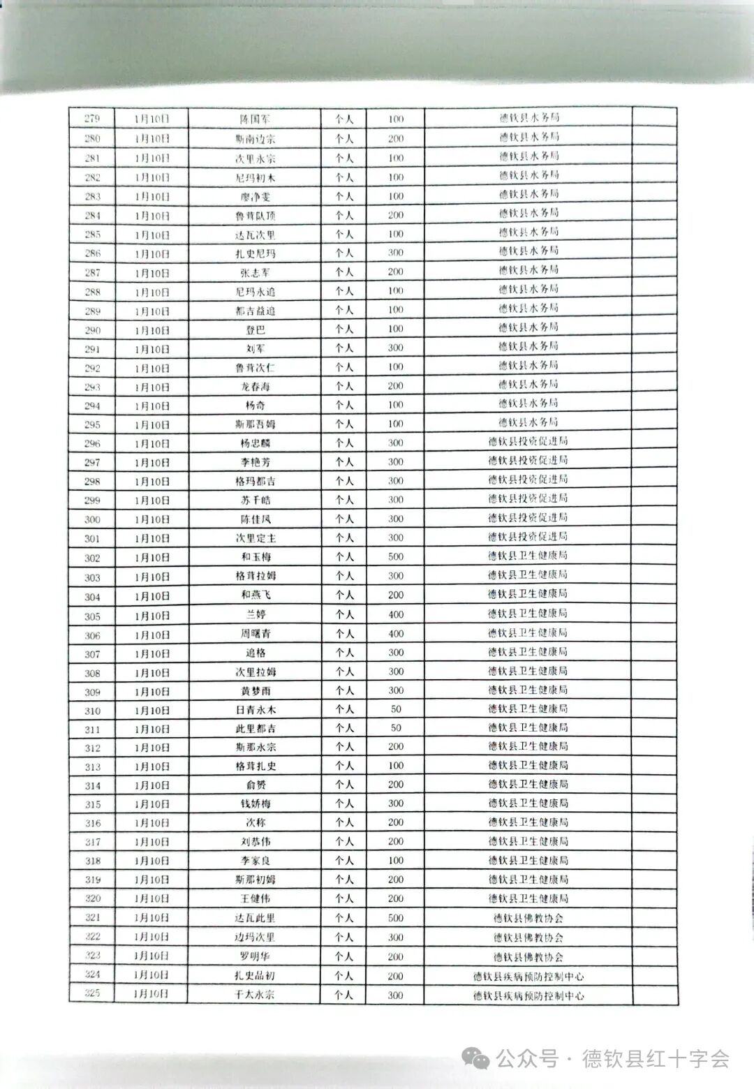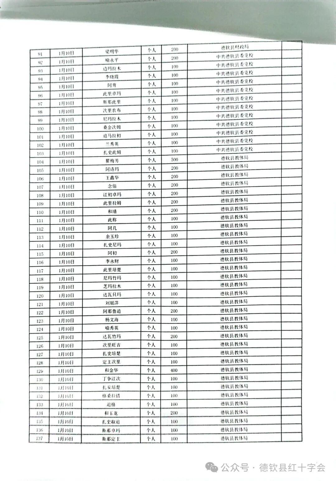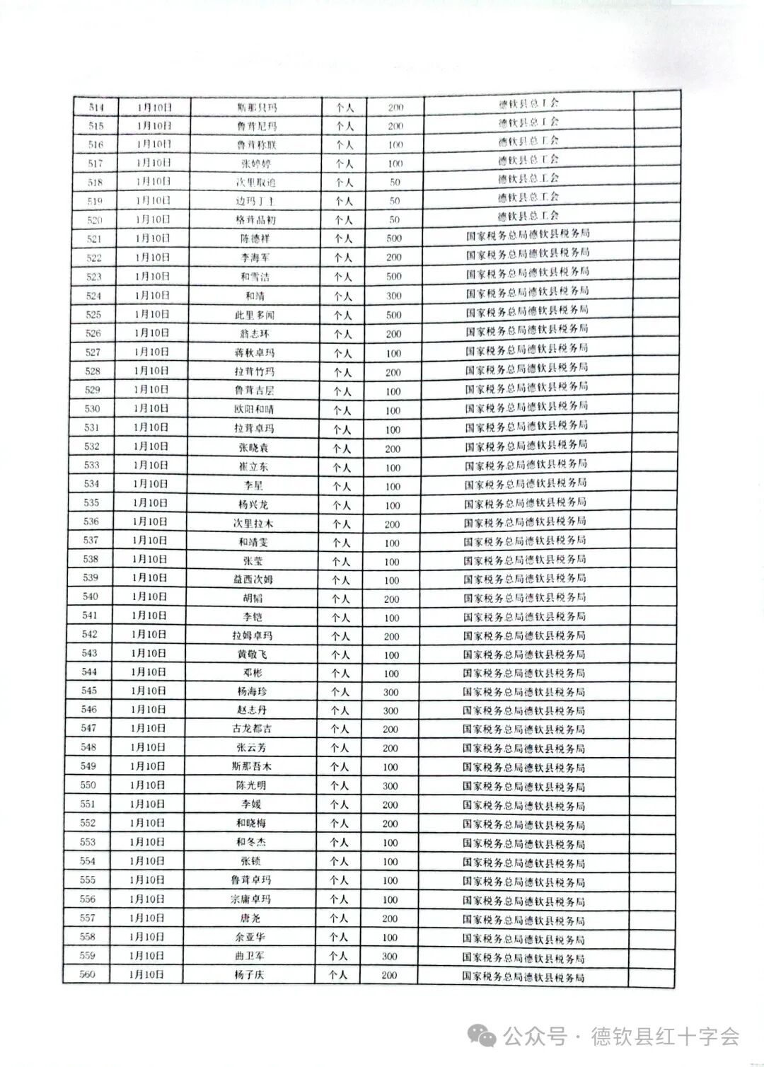 西藏自治区日喀则市定日县抗震救灾捐款情况公示(第二期)