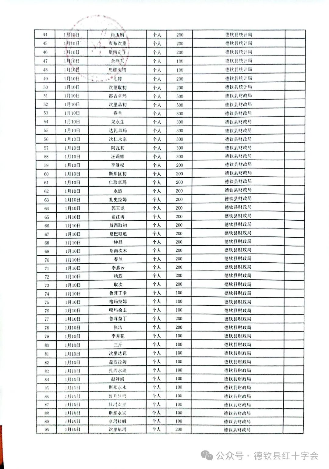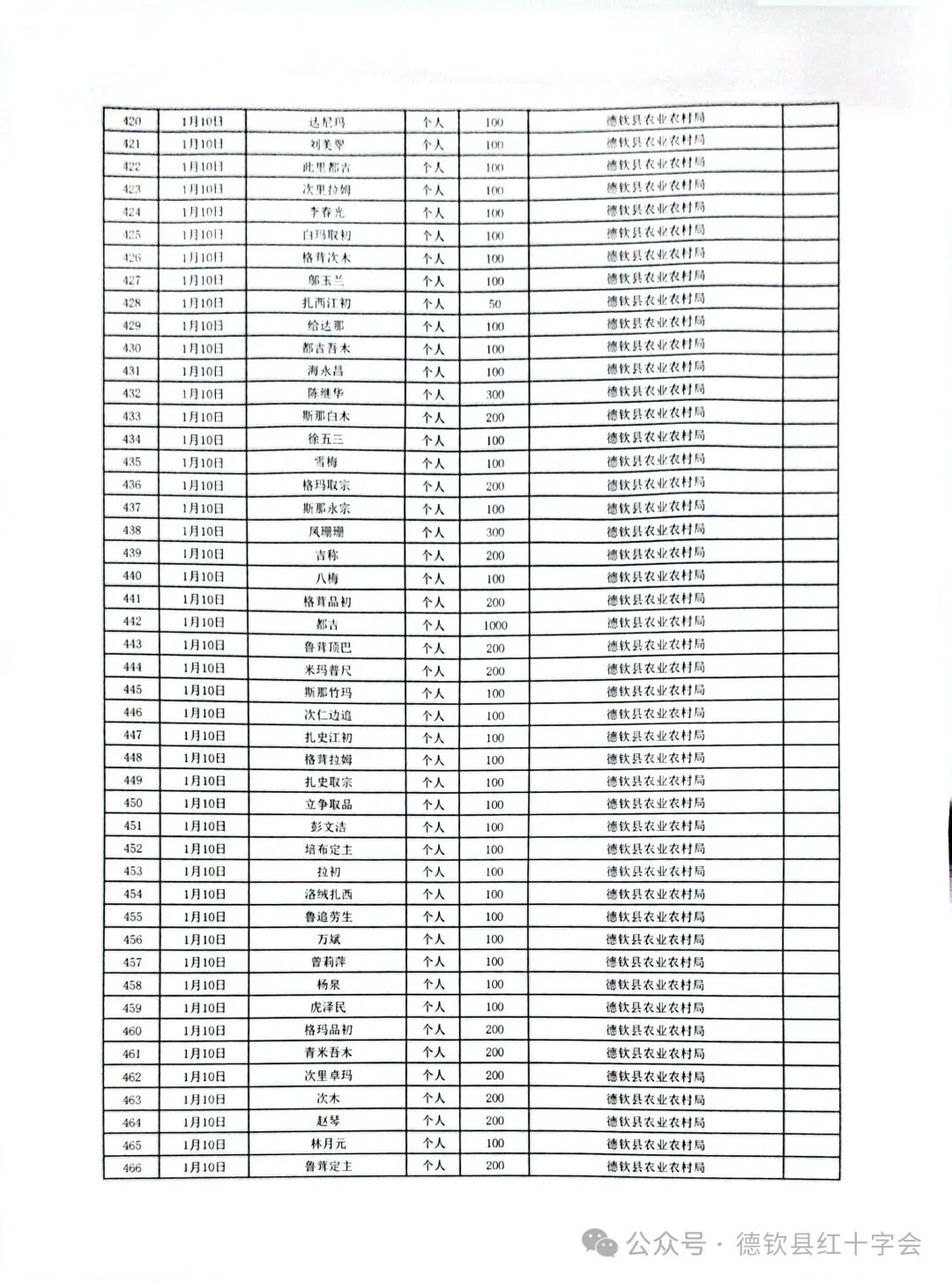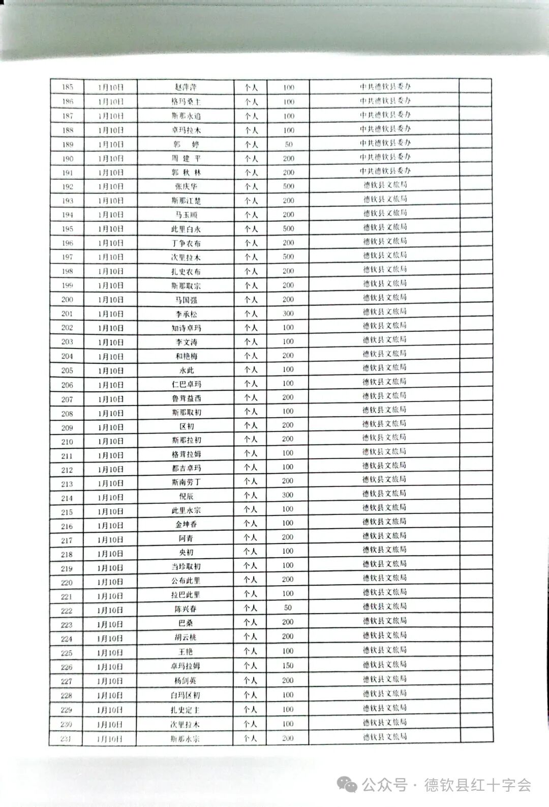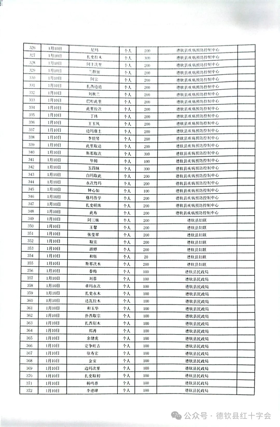 西藏自治区日喀则市定日县抗震救灾捐款情况公示(第二期)
