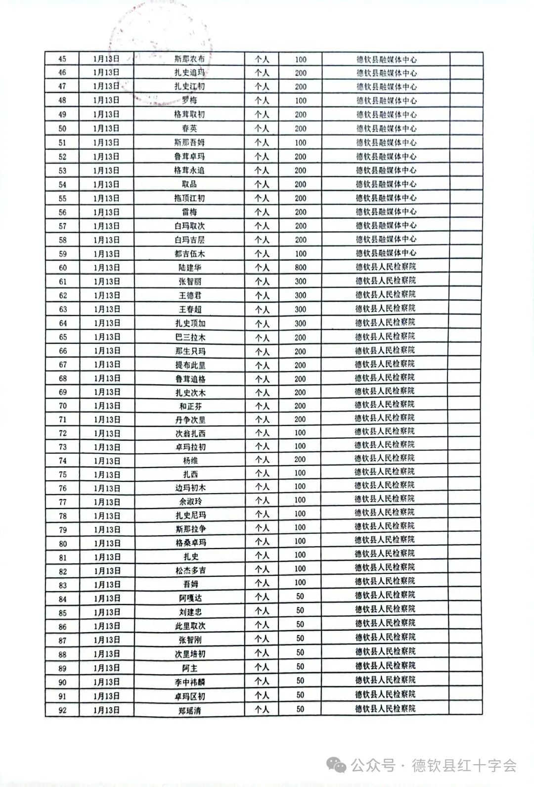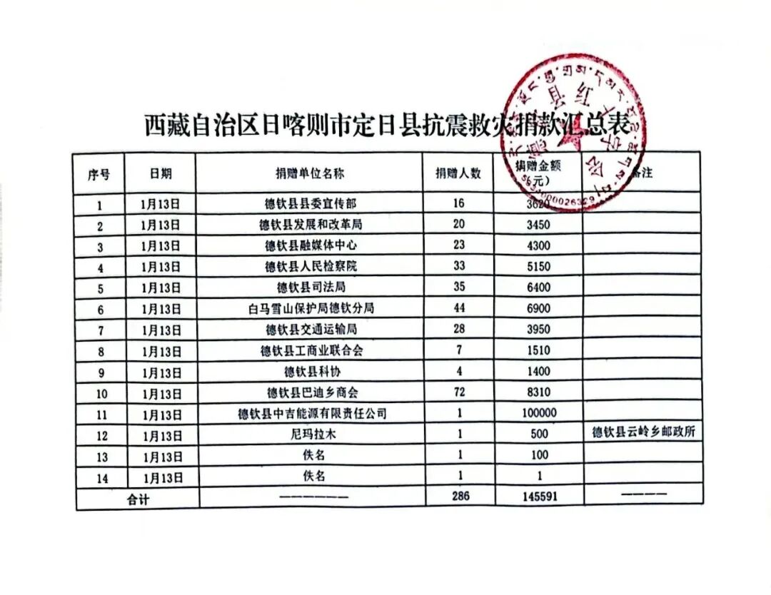 西藏自治区日喀则市定日县抗震救灾捐款情况公示(第四期)