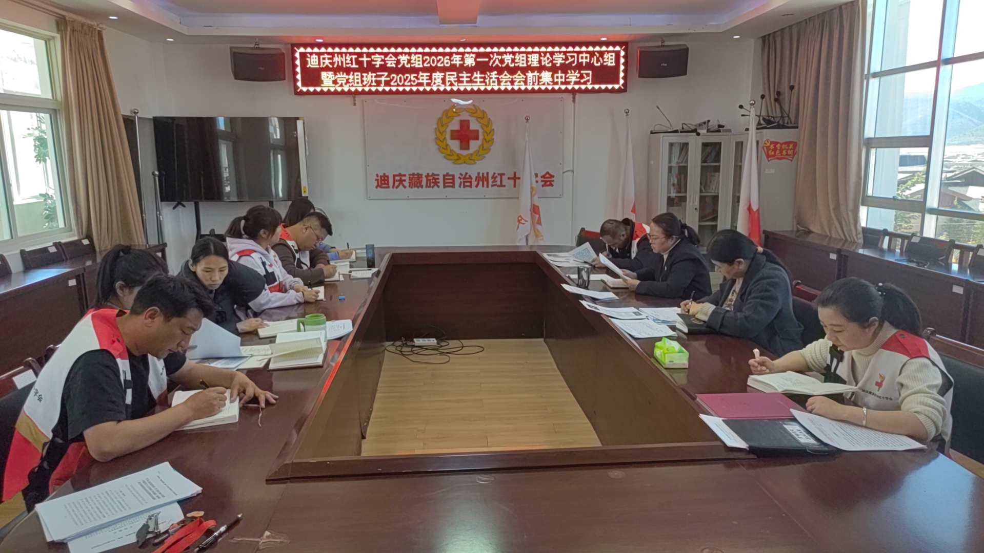 1月21日,迪庆州红十字会举行党组理论学习中心组2026年第一次暨2025年度民主生活会会前集中学习。党组书记、常务副会长浩春丽主持会议,党组班子及全体干部职工参会。