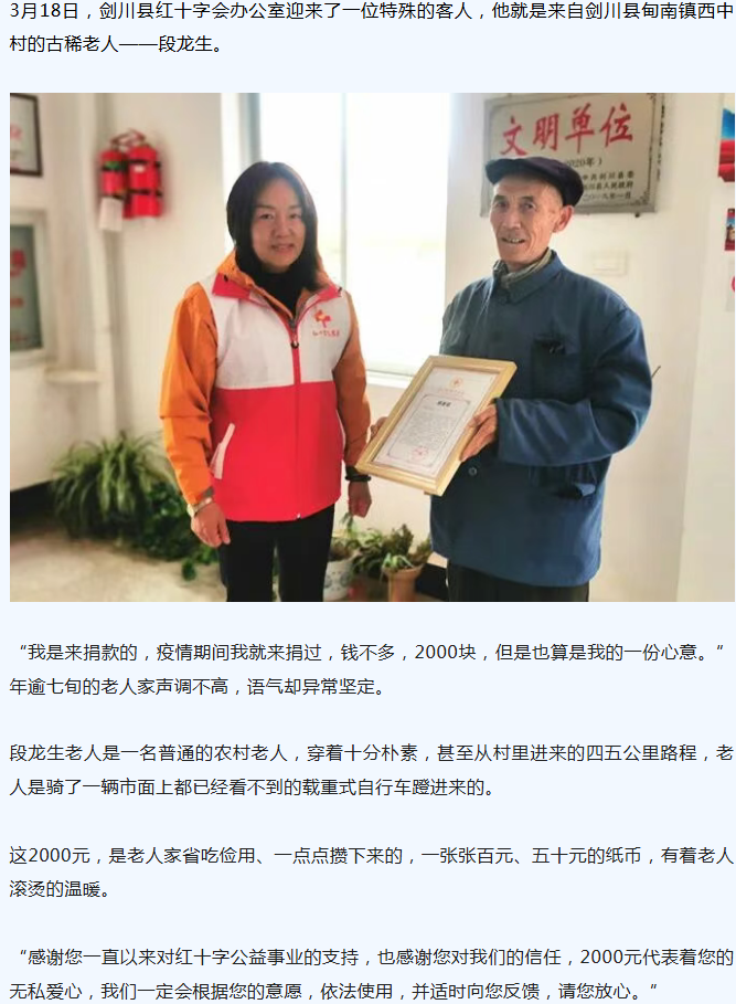 2000元的温度,古稀老人段龙生的拳拳爱心