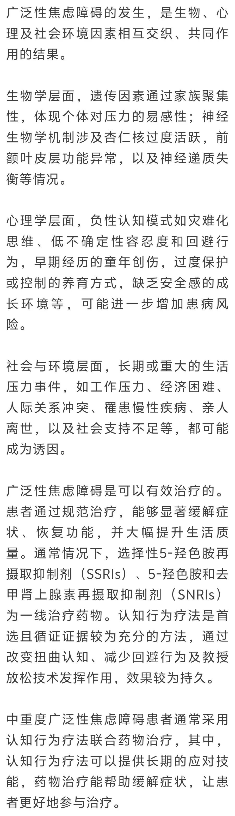 广泛性焦虑障碍不是“庸人自扰”,而是可干预、可疗愈的疾病。认识它,理解它,善用科学工具并勇于求助,患者就能穿越焦虑的迷雾。