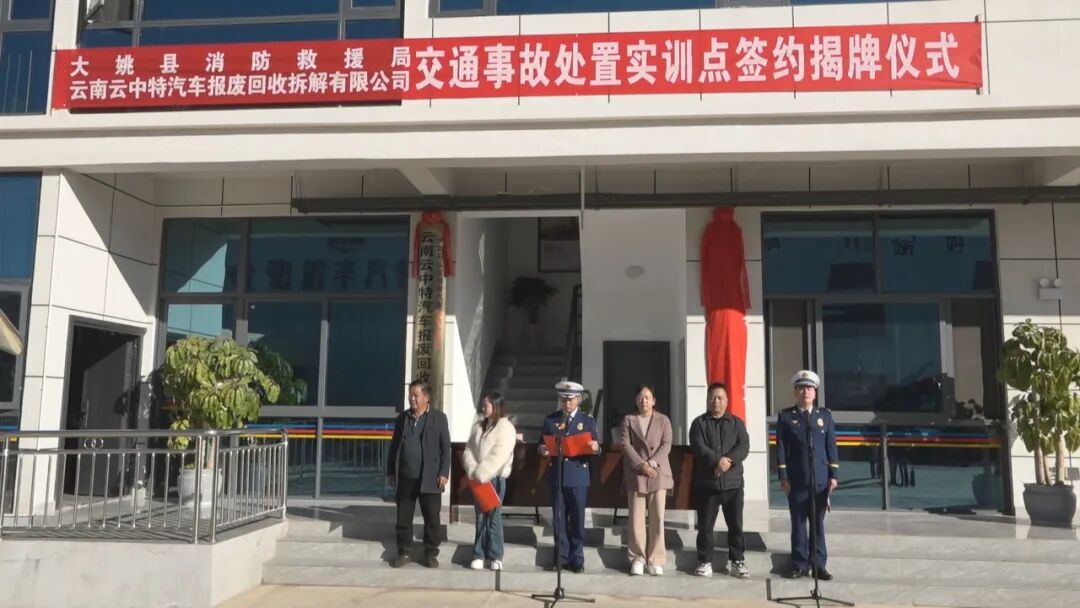 近日,大姚县消防救援局与云南云中特汽车报废回收拆解有限公司举行交通事故处置实训点签约揭牌仪式,标志着全县首个专业化交通事故救援实训基地正式启用。
