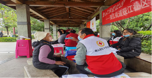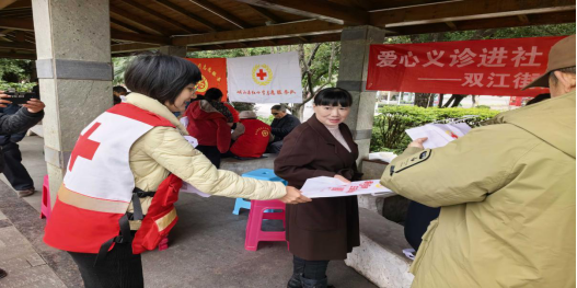 2025年11月20日上午,由县红十字会养老志愿服务队、县银发医疗志愿服务队和猊江社区联合举办的"守护健康·银龄相伴"义诊活动在登云丽景小区河边长廊圆满举行。