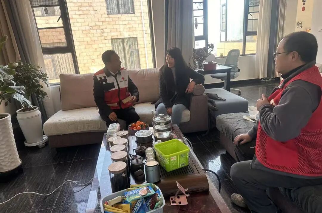 1月21日上午,大理州红十字会与大理市下关街道兴盛社区共同开展春节前走访慰问活动。州红十字会党组书记李福禧、常务副会长罗金洪一行深入兴盛社区,入户为困难家庭送去装有米、油、毛毯、糖果的“博爱家庭箱”,致以节日问候,并详细询问他们的身体状况、家庭生活及实际困难,叮嘱他们保重身体,鼓励他们保持乐观心态,有困难及时向社区反映。