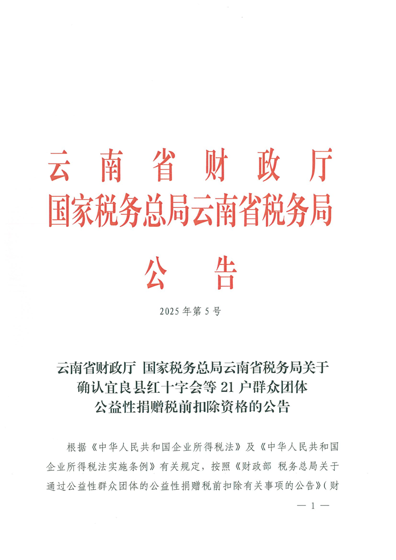 公益性捐赠税前扣除资格的公告