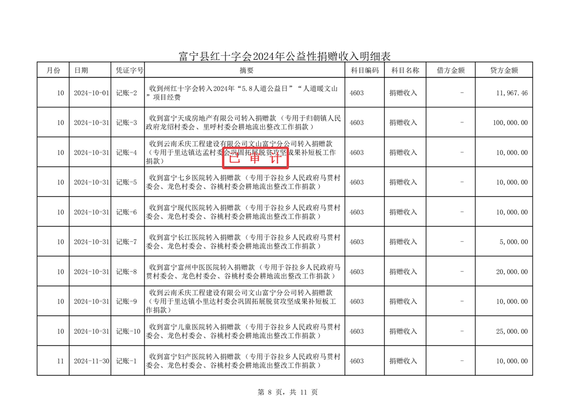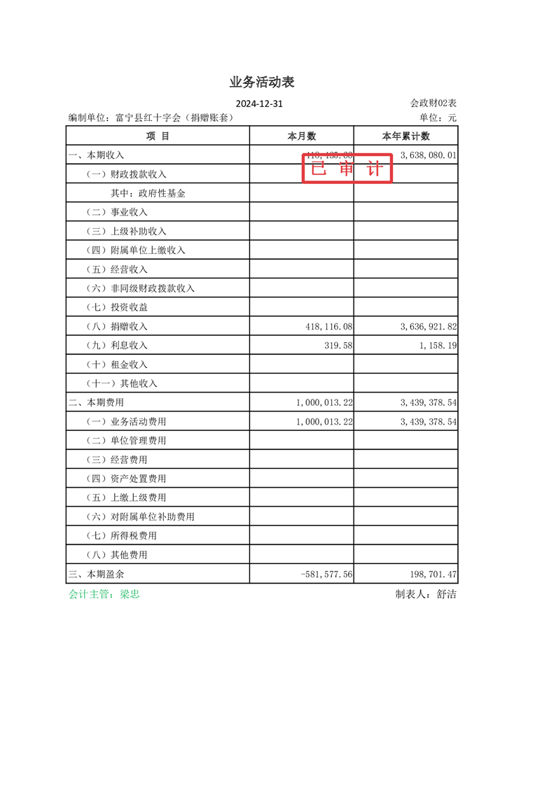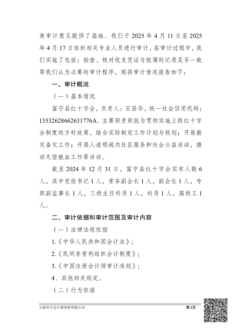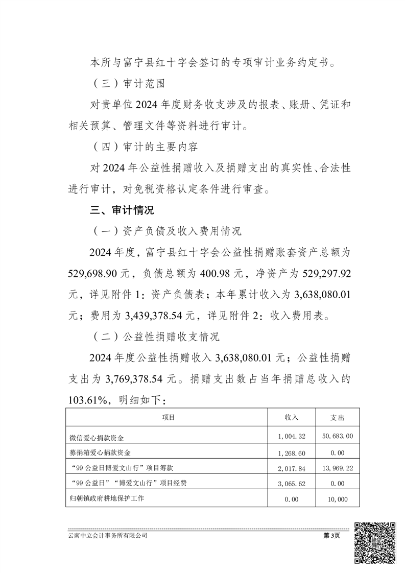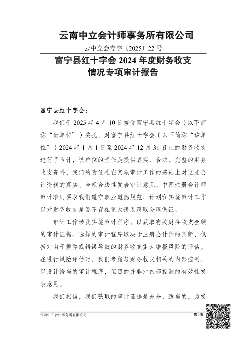 富宁县红十字会 2024 年度财务收支情况专项审计报告
