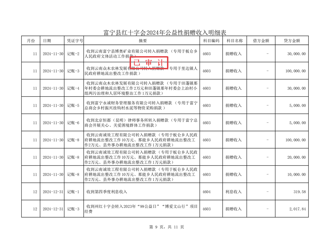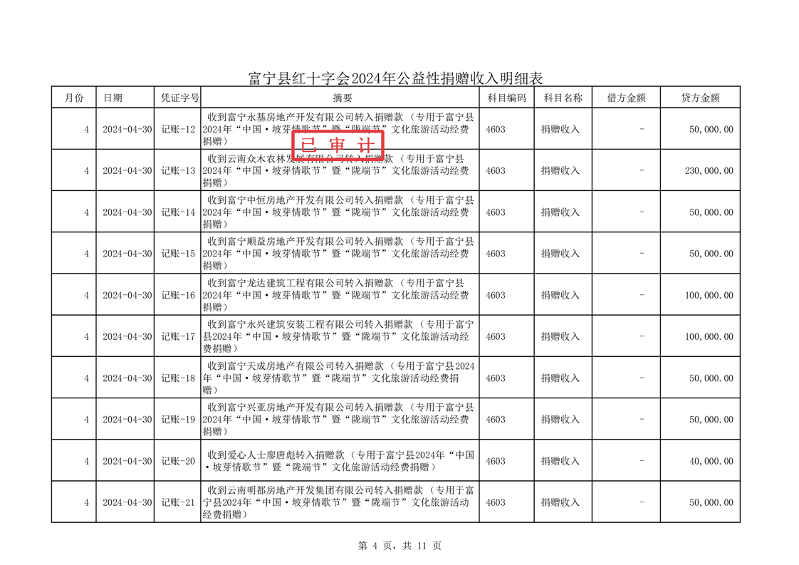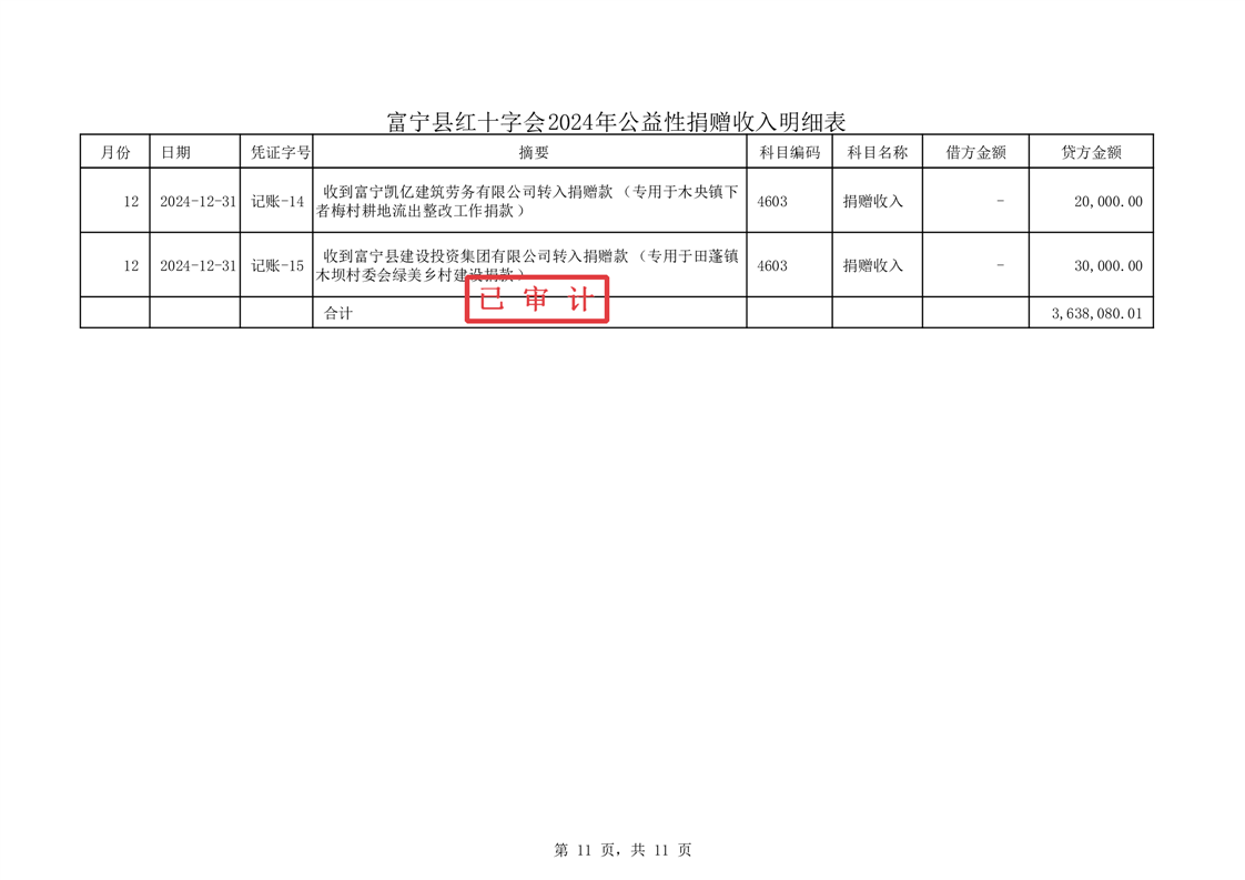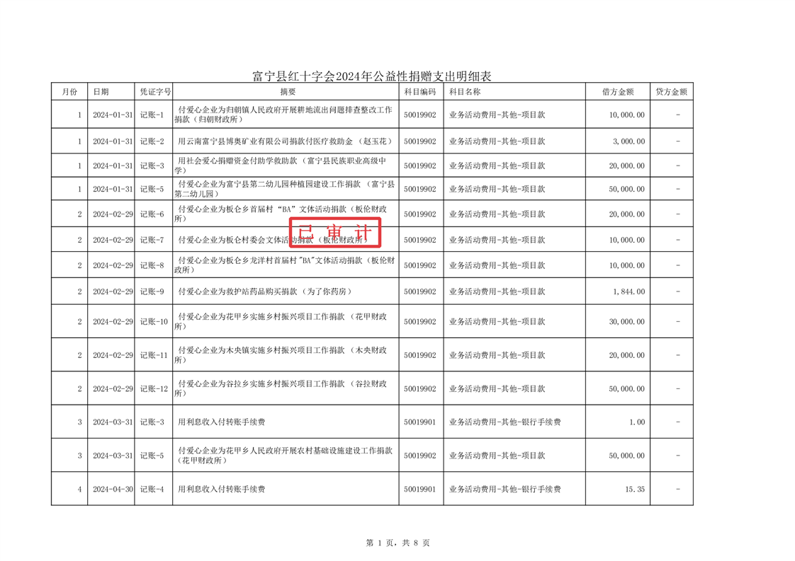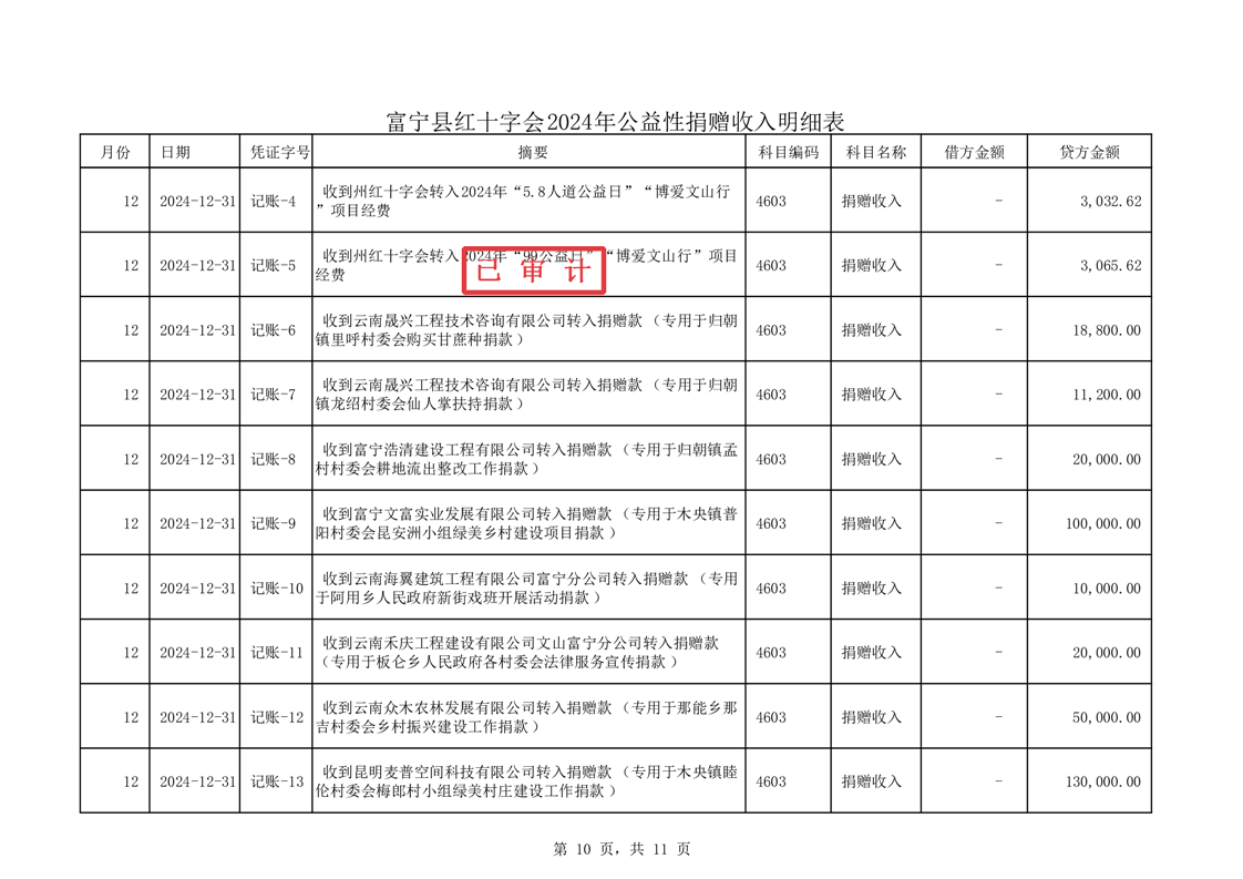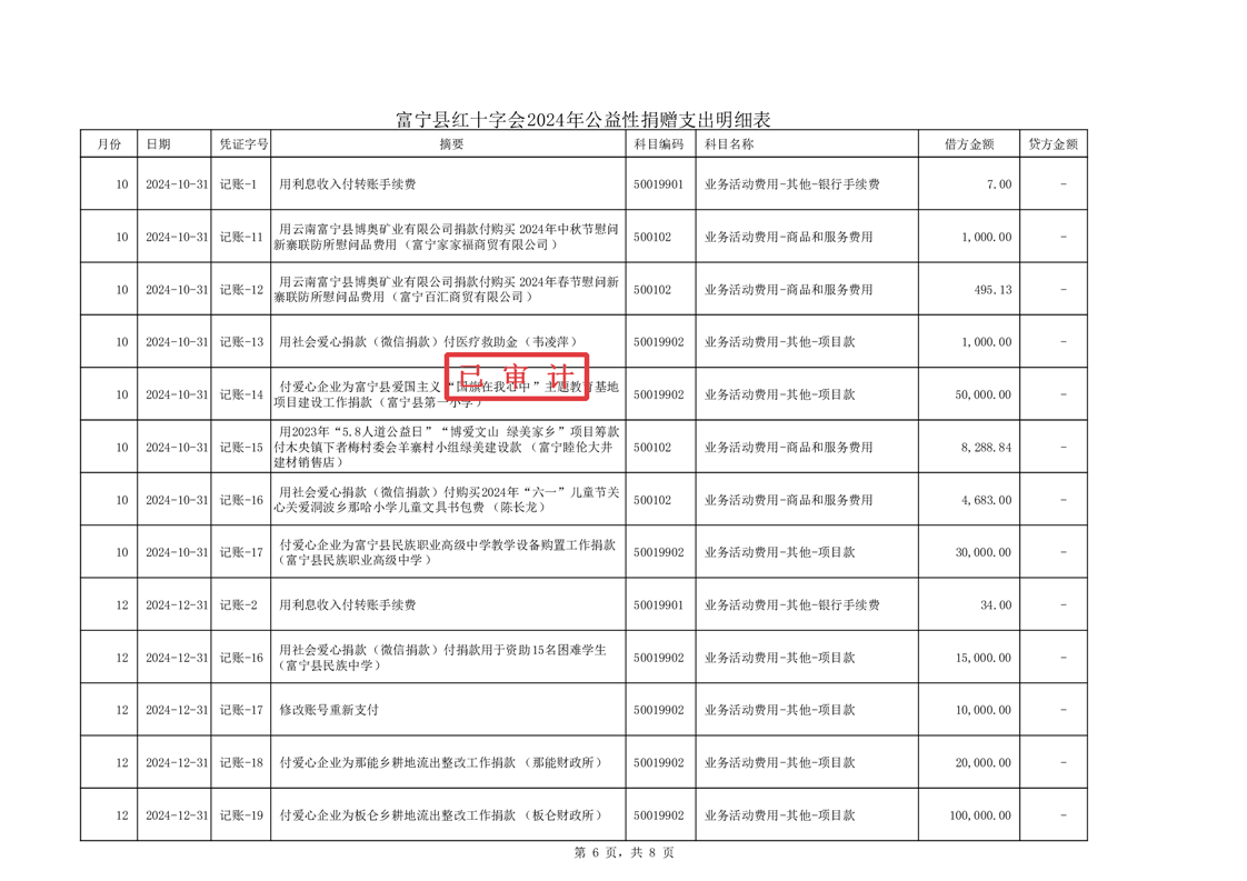 富宁县红十字会 2024 年度财务收支情况专项审计报告