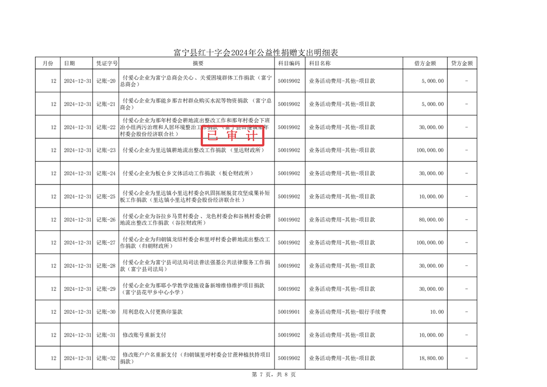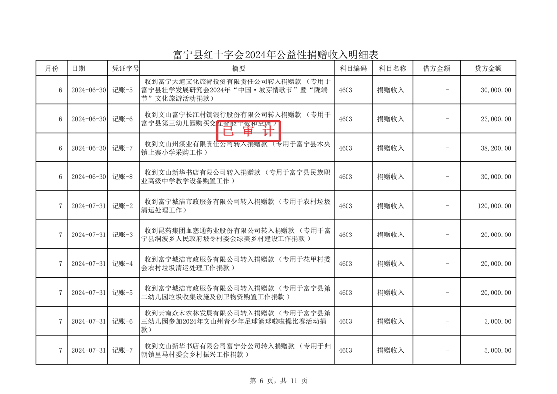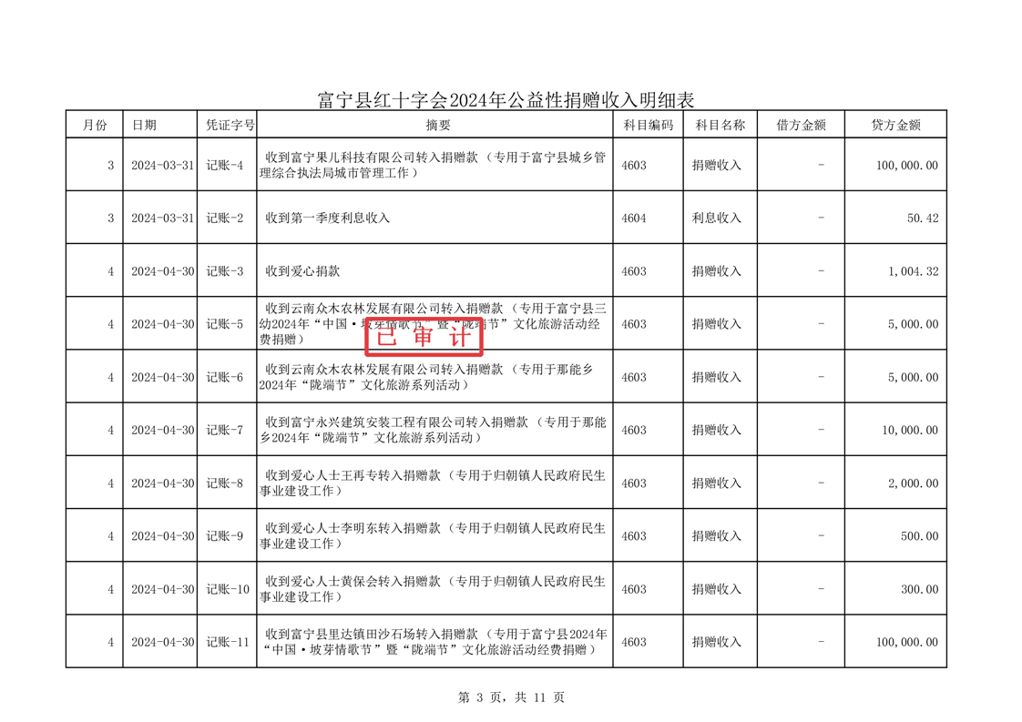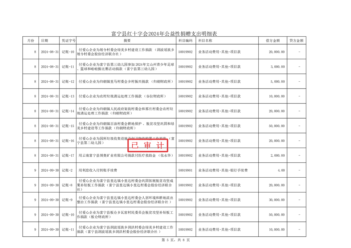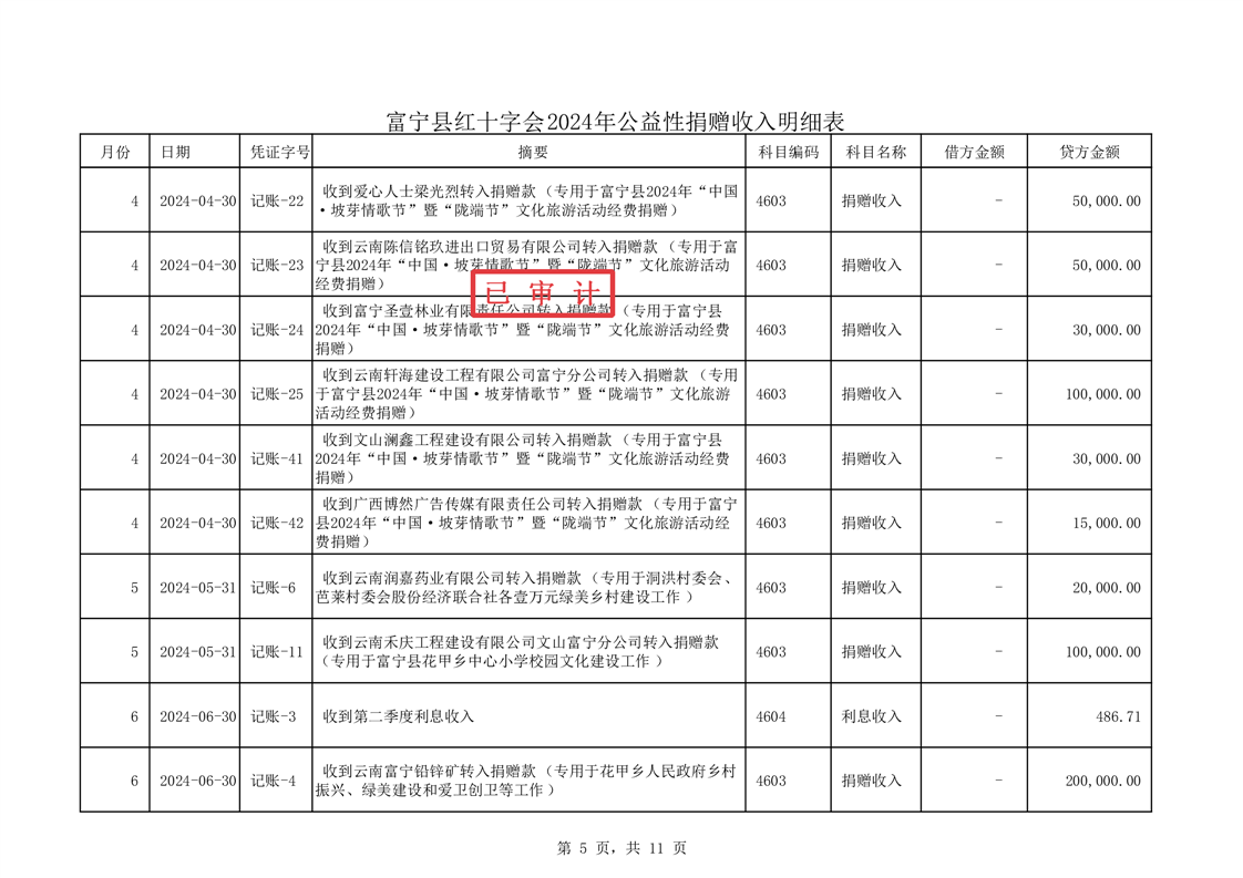 富宁县红十字会 2024 年度财务收支情况专项审计报告