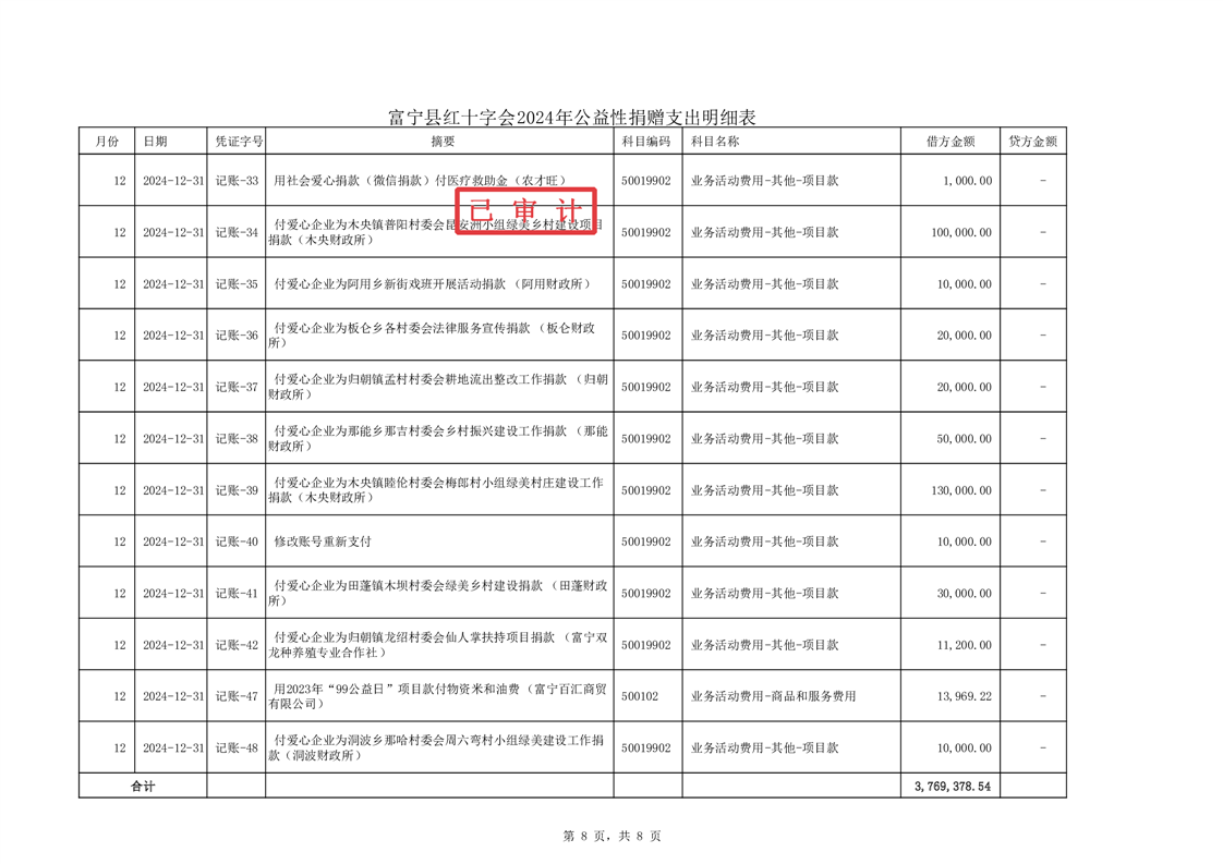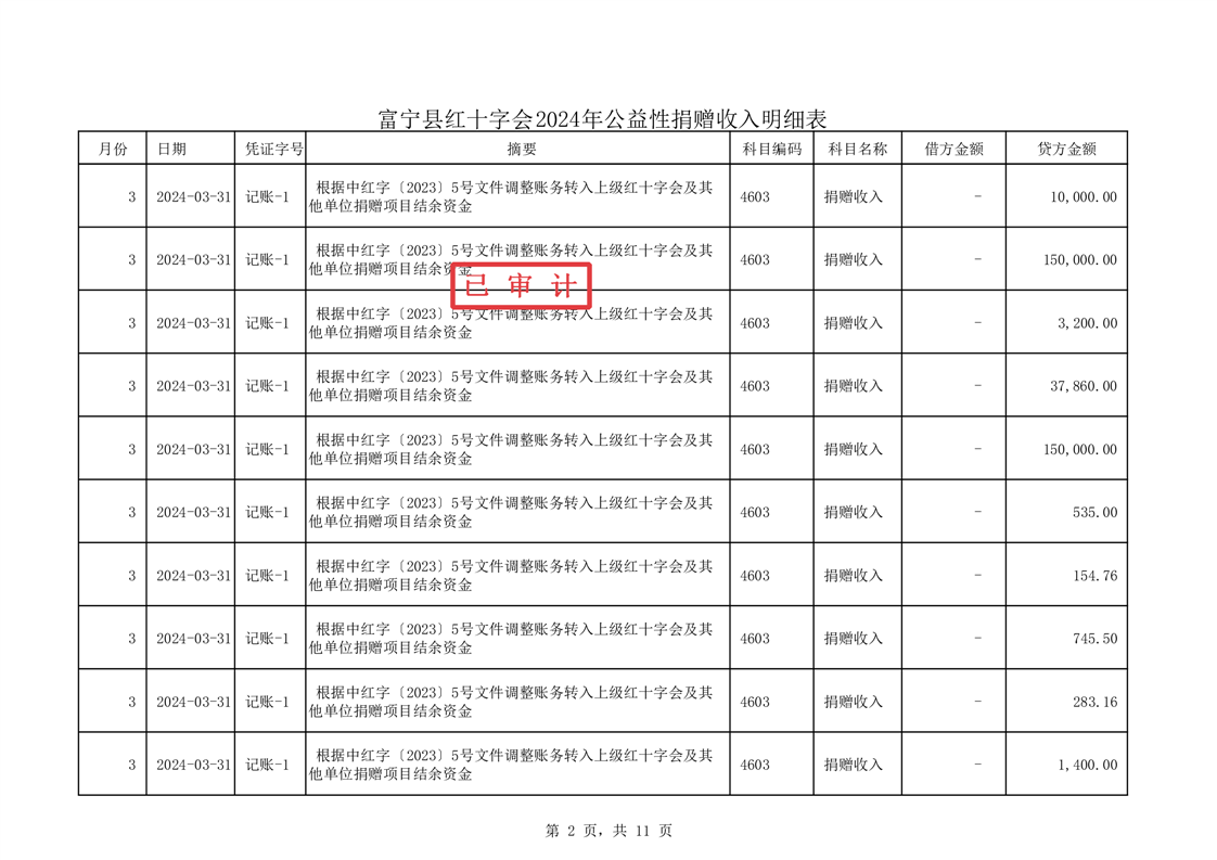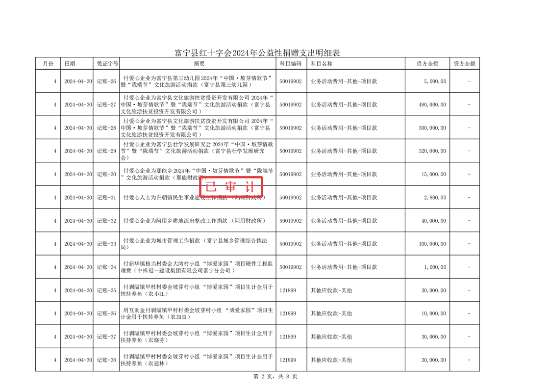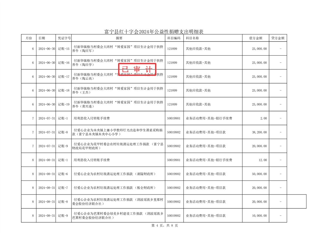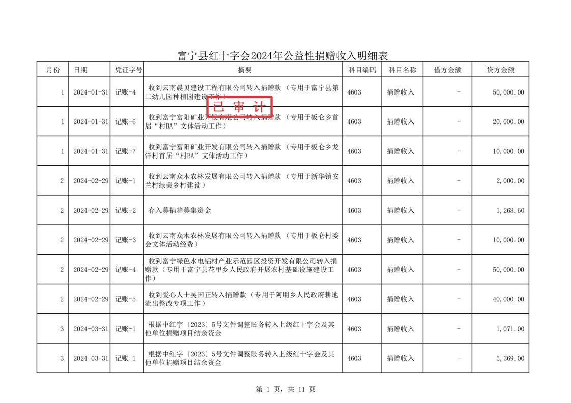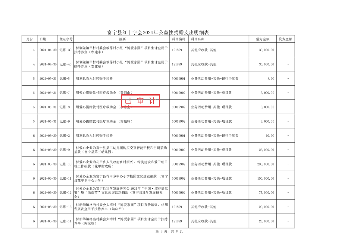 富宁县红十字会 2024 年度财务收支情况专项审计报告