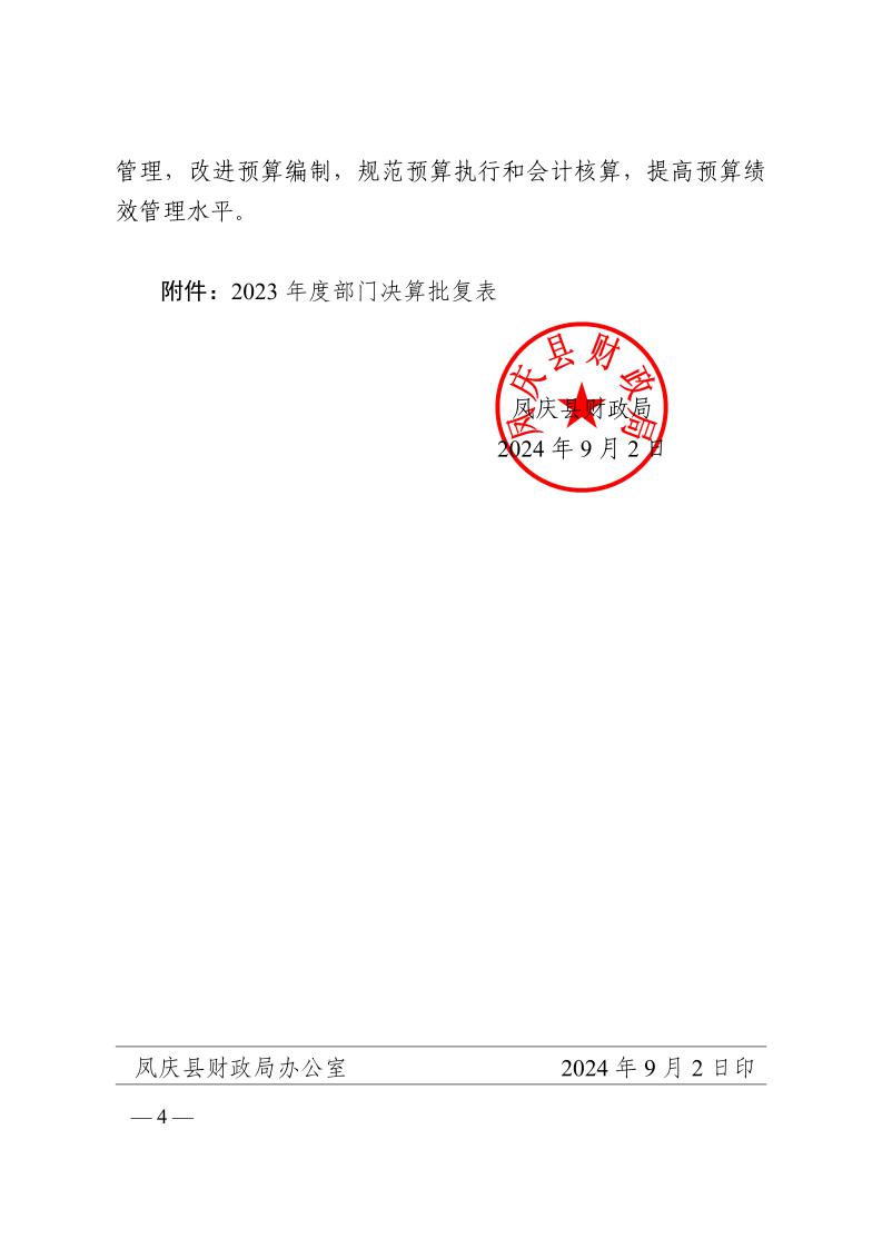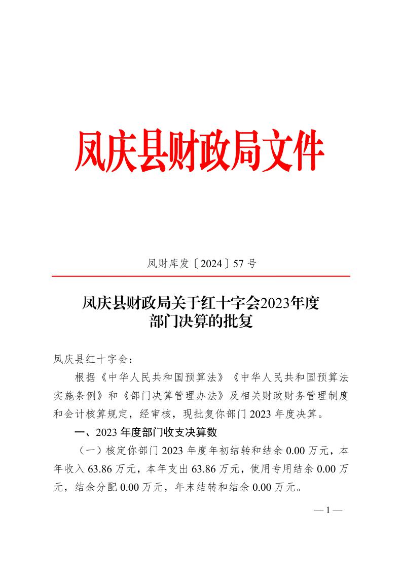 凤庆县财政局关于凤庆县红十字会2023年度部门决算的批复