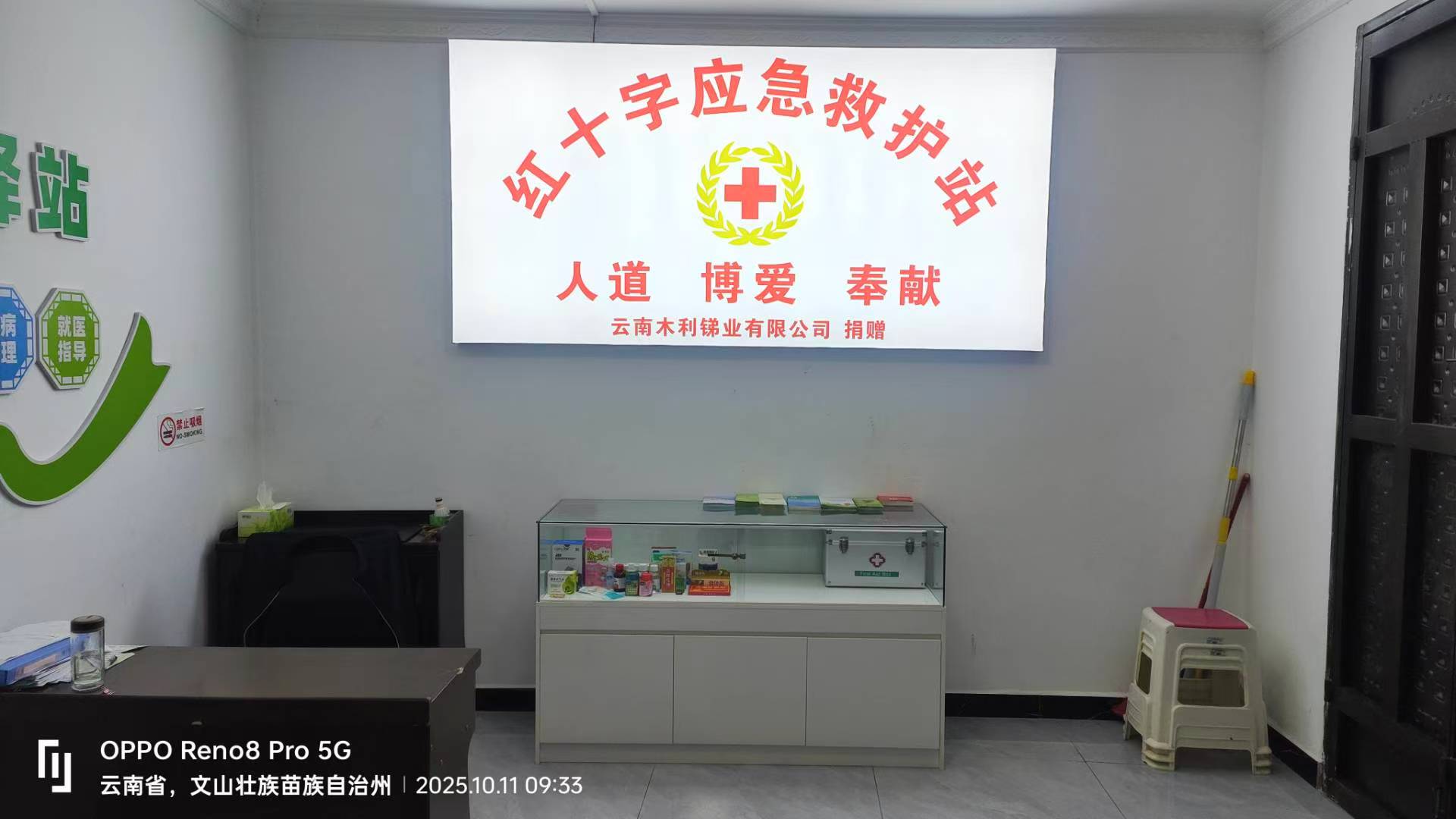 微型救护站建设旨在提升基层应急救护能力,确保在突发事件和日常意外伤害发生时,能够快速响应、及时施救,建成后将实现填补急救空白、缩短救援时间、普及急救知识的多重目标。微型救护站建设资金由云南木利锑业有限公司定向捐赠支持。