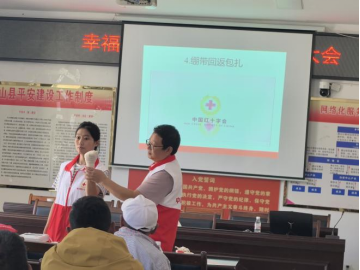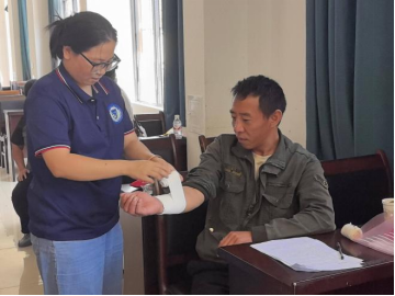 为宣传与推动应急救护工作,提高社区群众在突发事件中的自救互救能力,掌握心肺复苏和自动体外除颤仪使用、外伤包扎等救护知识和技能。9月25日,贡山县红十字在幸福社区开展了一场红十字救护员(初级)取证培训。