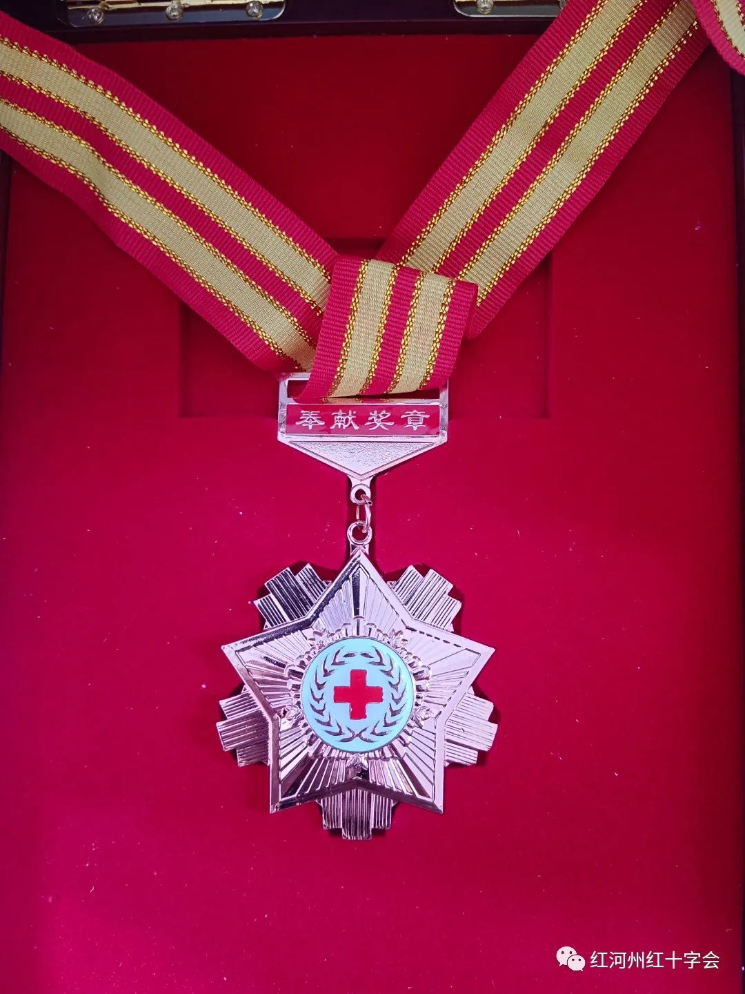“中国红十字奉献奖章”是为表彰国内外对红十字会人道公益事业做出重大贡献的捐赠者而设置的荣誉,是中国人道公益事业的最高荣誉之一。“博爱捐助”牌匾是云南省红十字会对各级组织在推进公益事业方面做出的贡献和取得的成绩的认可。
