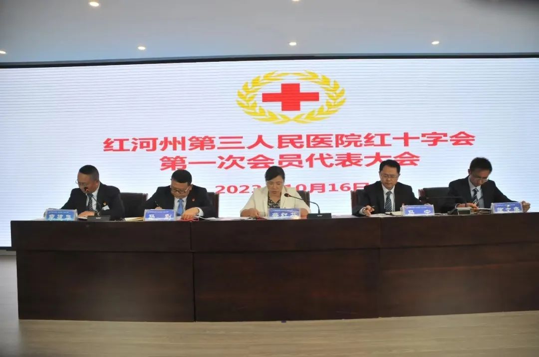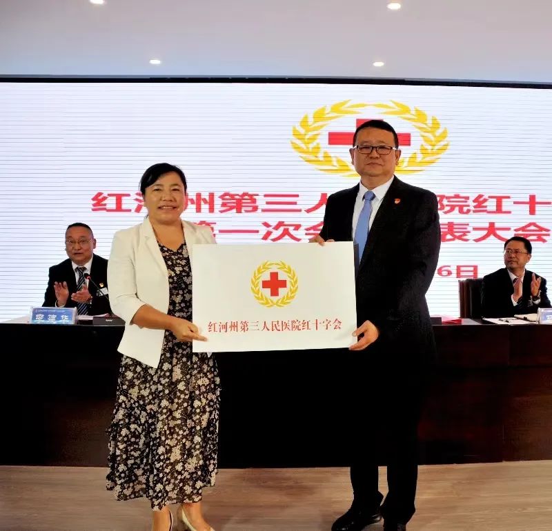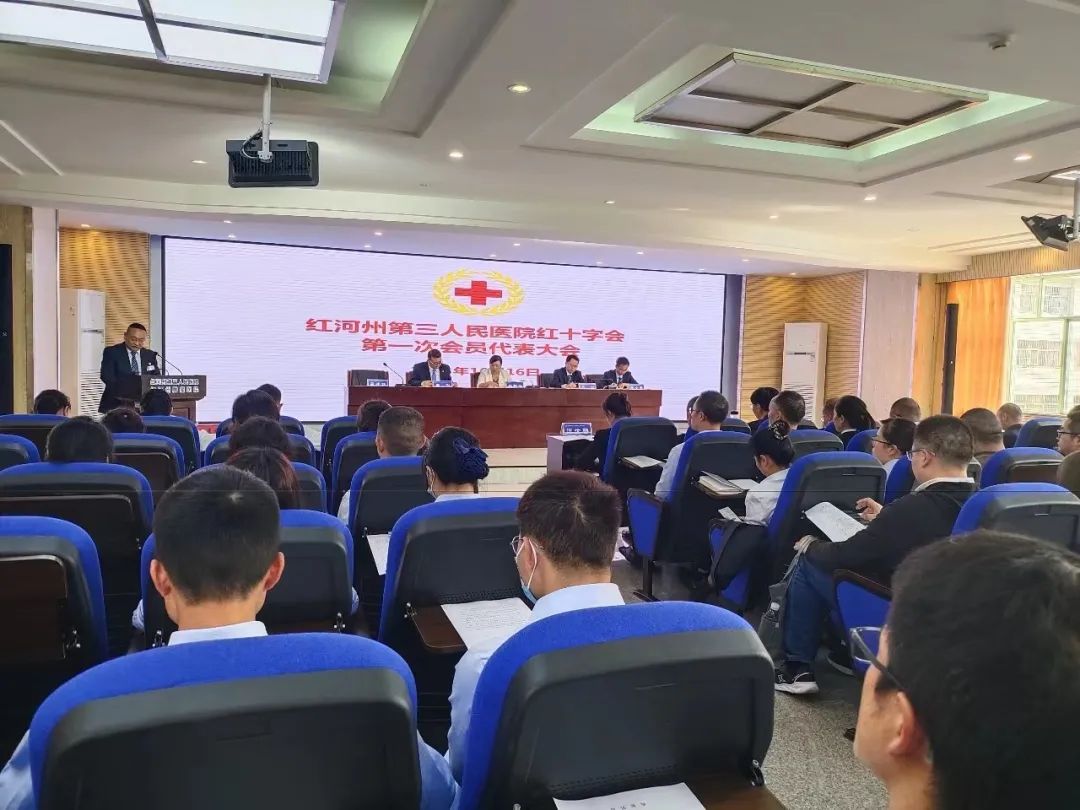 10月16日下午,红河州第三人民医院红十字会成立暨第一次会员代表大会在医院门诊九楼多功能厅召开,红河州红十字会党组成员、副会长普红芬出席大会,医院党政班子成员及会员代表共60余人参加大会,李建华副院长主持会议。