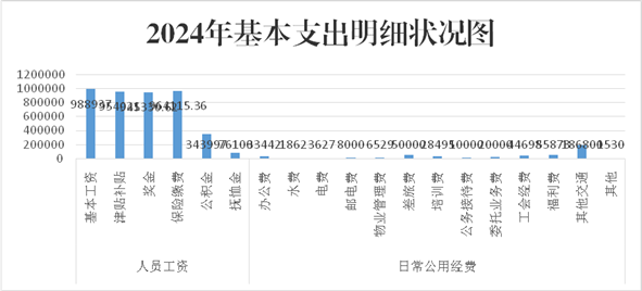 2024年度用于保障红河哈尼族彝族自治州红十字会机关、下属事业单位等机构正常运转的日常支出4766384.98元。其中:基本工资、津贴补贴等人员经费支出4272500.98元,占基本支出的89.64%;办公费、印刷费、水电费、办公设备购置等公用经费493884.00元,占基本支出的10.36%。