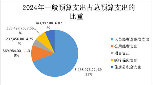 19.住房保障(类)支出343997.00元,占一般公共预算财政拨款总支出的6.87%,完成年初预算的102.42%。主要用于缴存在职人员的住房公积金;造成预决算差异的主要原因是:2024年临选事业人员3名、2024年1月退休1人、2024年5月死亡1人,导致缴纳在职人员住房公积金支出增加8117.00元。