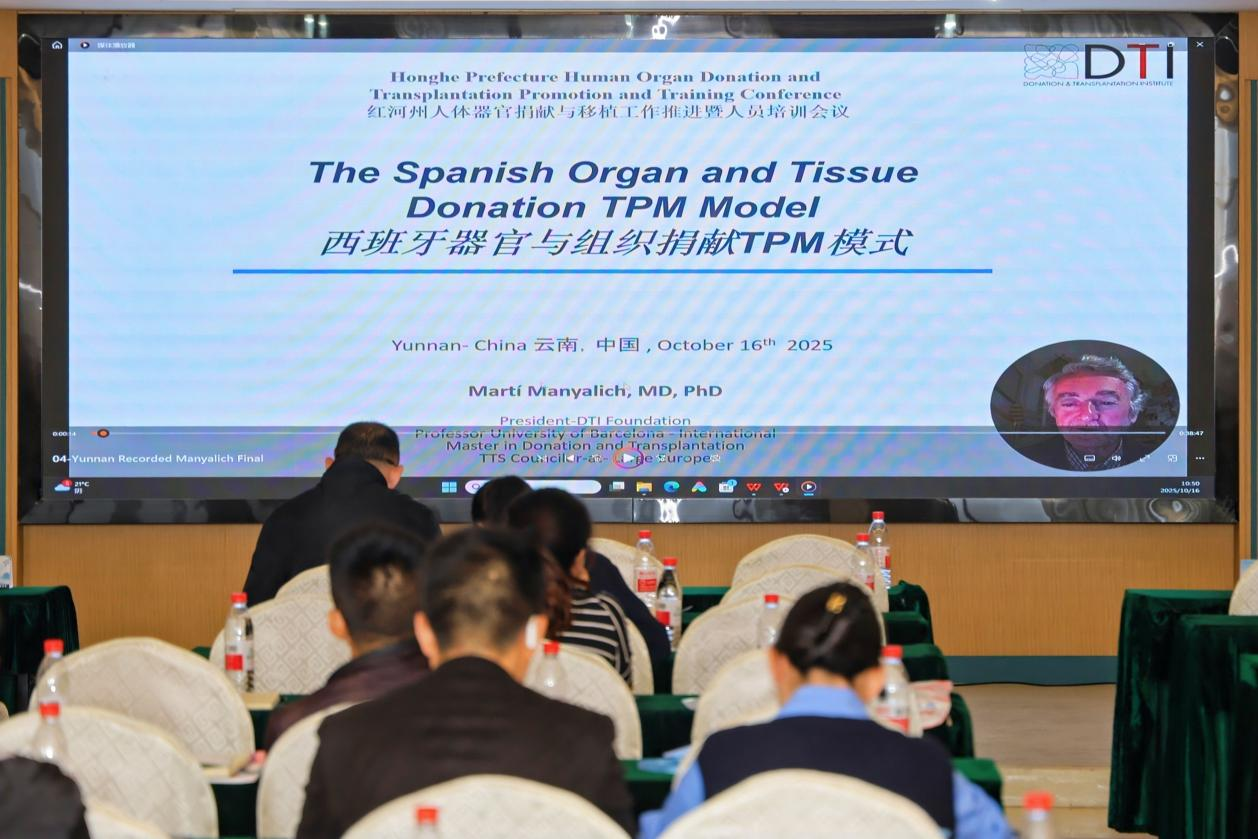 本次会议特别邀请到西班牙器官捐献与移植研究所的 Martí Manyalich 教授,为大家介绍了“The Spanish Organ and Tissue Donation Model”(西班牙器官与组织捐献模式)。昆明市第一人民医院王胤佳副院长以《管理的体系化规范化建设促进器官捐献工作高质量发展》为题,昆明医科大学人文学院张瑞红教授围绕《器官捐献过程中的伦理问题》、滇南中心医院(红河州第一人民医院)陈朝明围绕《脑死亡的判定》、昆明市儿童医院谢超围绕《儿童患者的监护与管理》、昆明市第一人民医院陈鸿教授围绕《运动系统同种异体组织移植的经验分享》、昆明市第一人民医院汪毅《心脏移植供心的维护、获取和保护技术》、红河州红十字会汪世梅围绕《红十字会在器官捐献工作中职责定位工作开展情况》进行讲解。