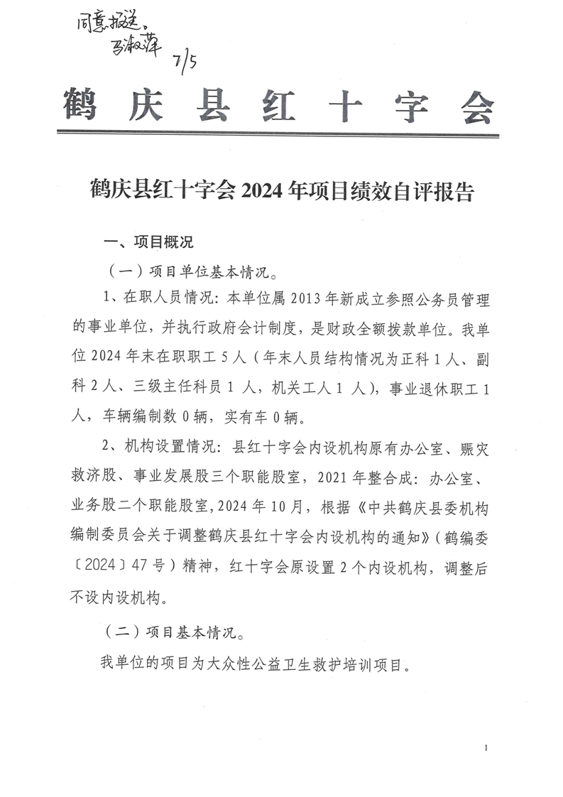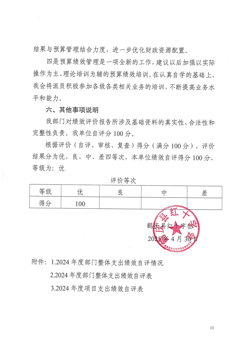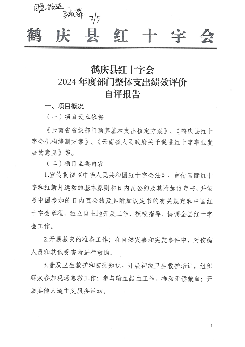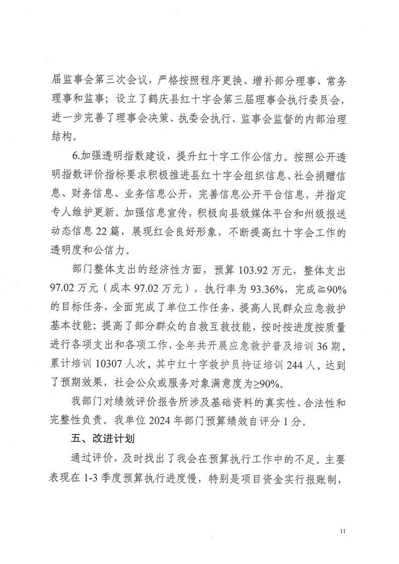 鹤庆县红十字会2024年预算支出绩效自评