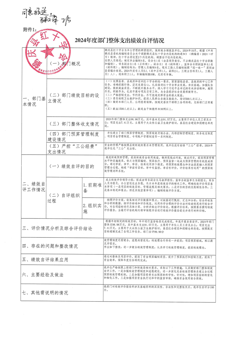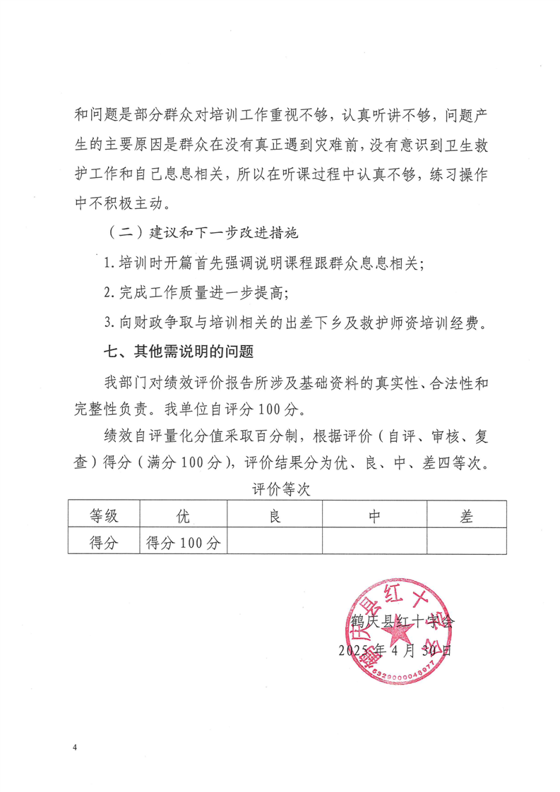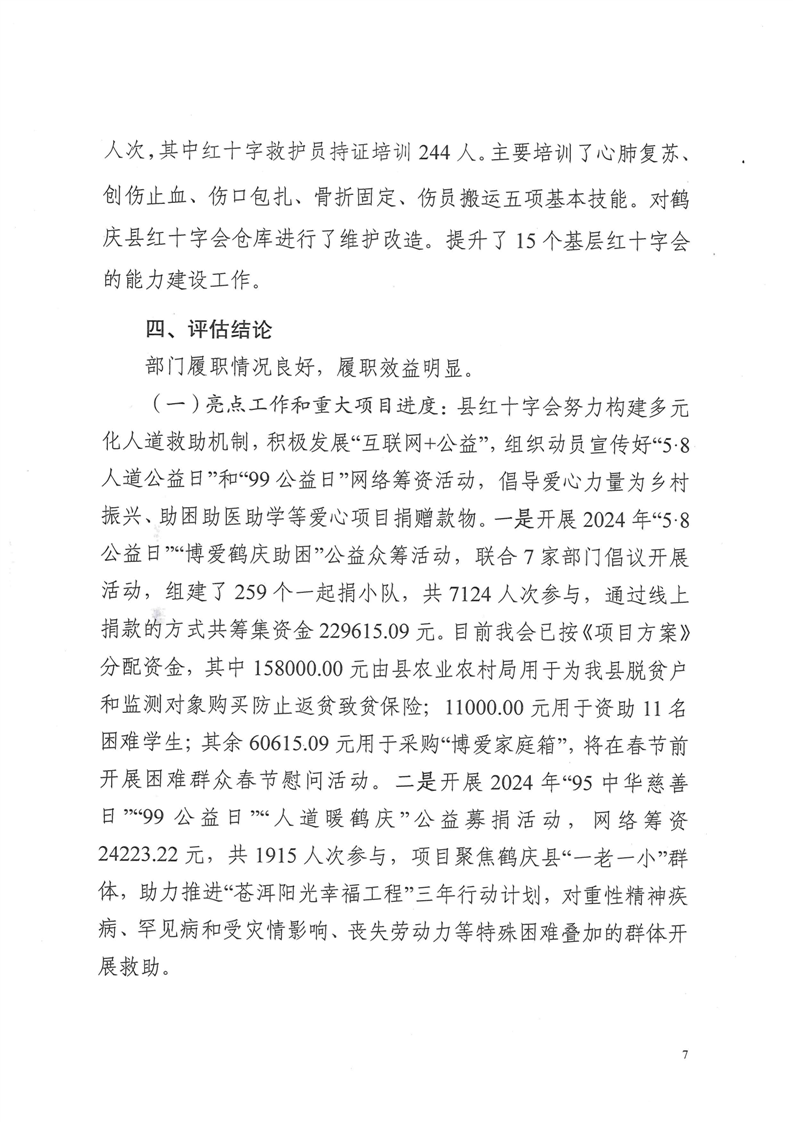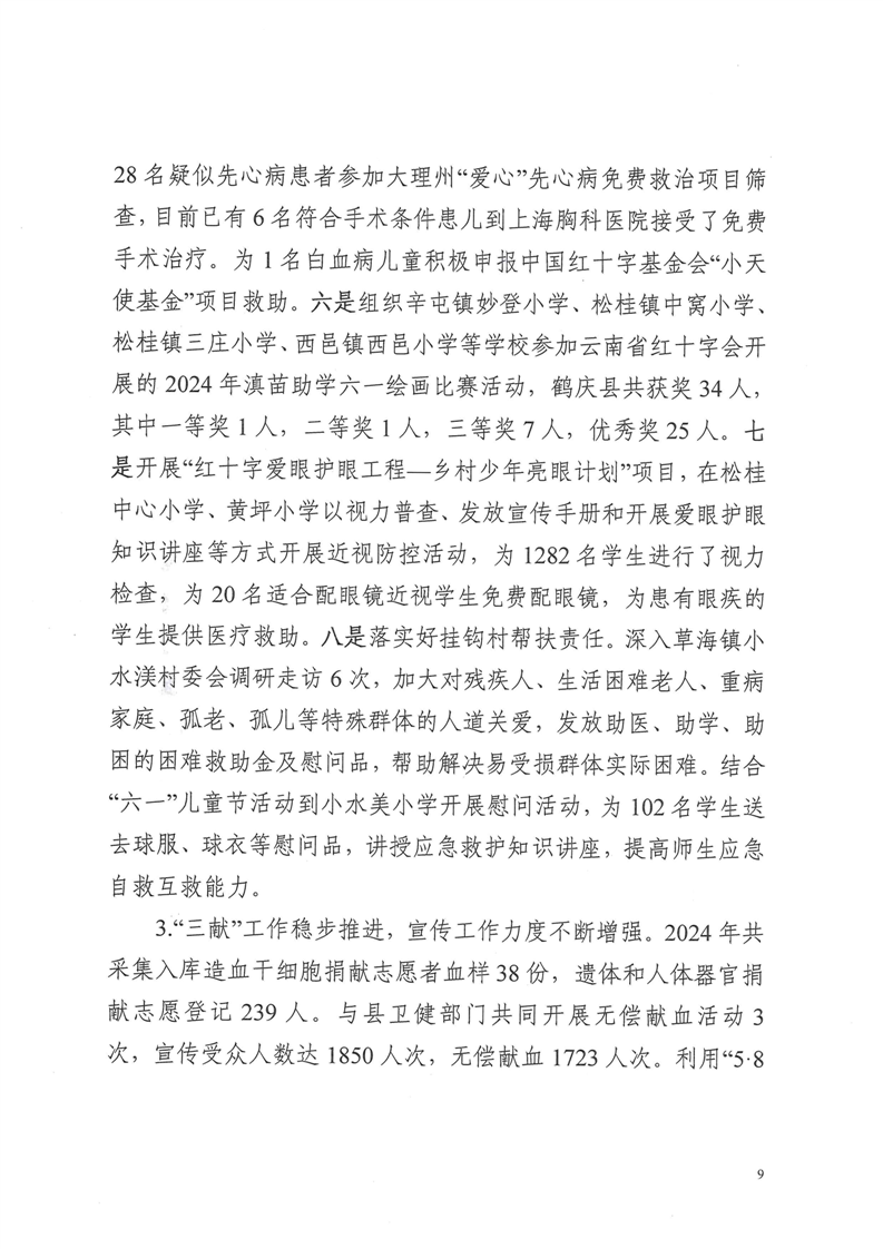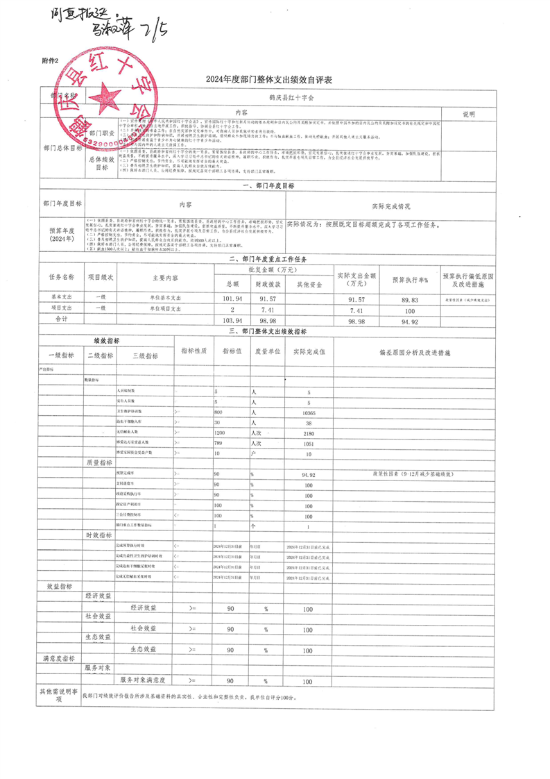 鹤庆县红十字会2024年预算支出绩效自评