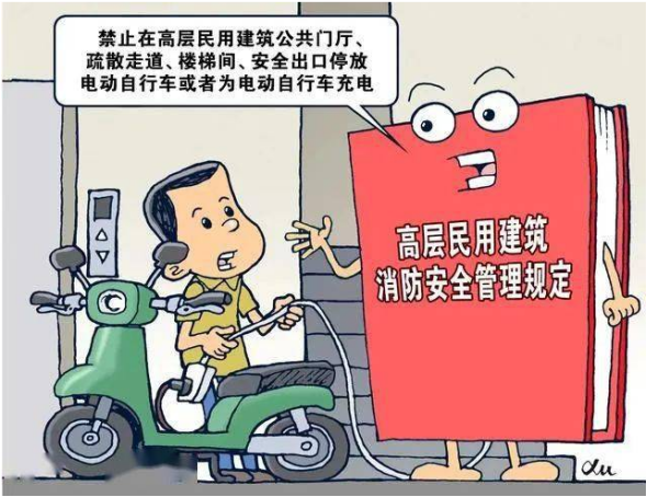 电动车停放、充电不是小事,请不要将电动车推到家中,更不要在室内或飞线为电动车充电。